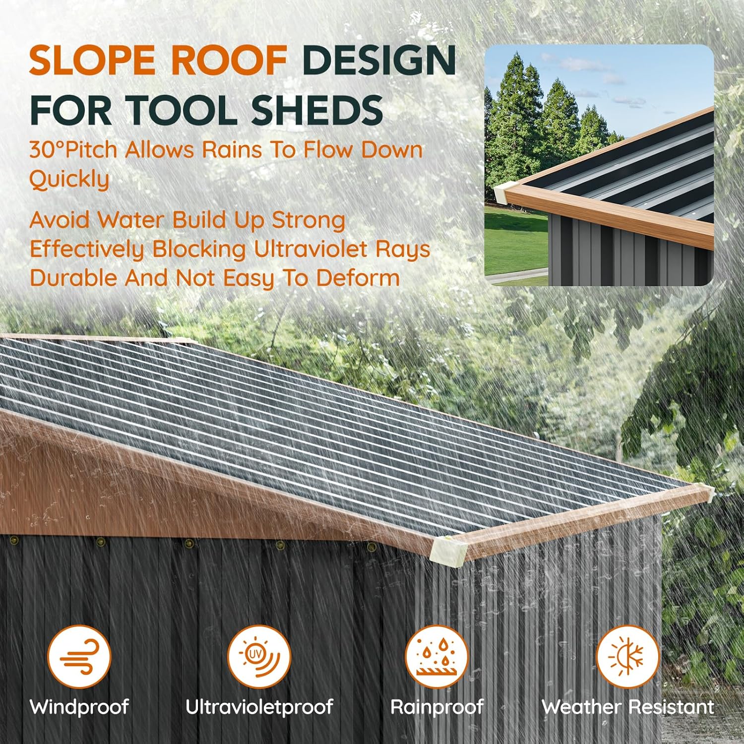 - 【Security & Safety】 Verdeluxe metal shed has a steel latch paired with a reinforced handle that clicks into a secure position, deterring both theft and unwanted visitors. The plastic edge guards and anti-collision corners eliminate sharp metal edges, making the shed kid- and pet-friendly—no more accidental scrapes or bruises.With floor frame,prevent moisture damage and make the storage shed more sturdy.