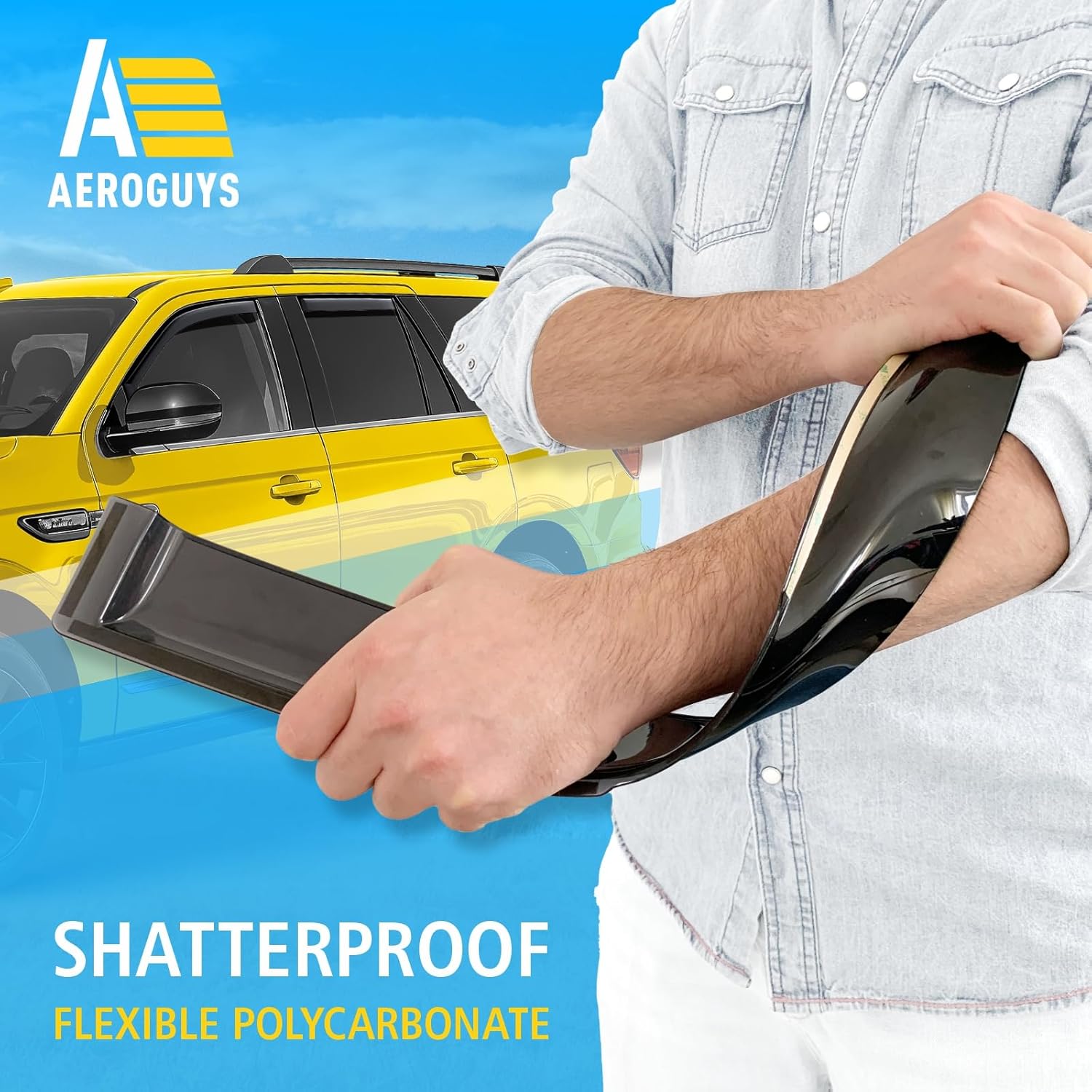 - Incredibly Durable AEROGUYS Auto Window Deflectors – They are made with strong and tough polycarbonate which is clear and scratch-resistant. They also provide UV protection making your ride more comfortable under all weather conditions.