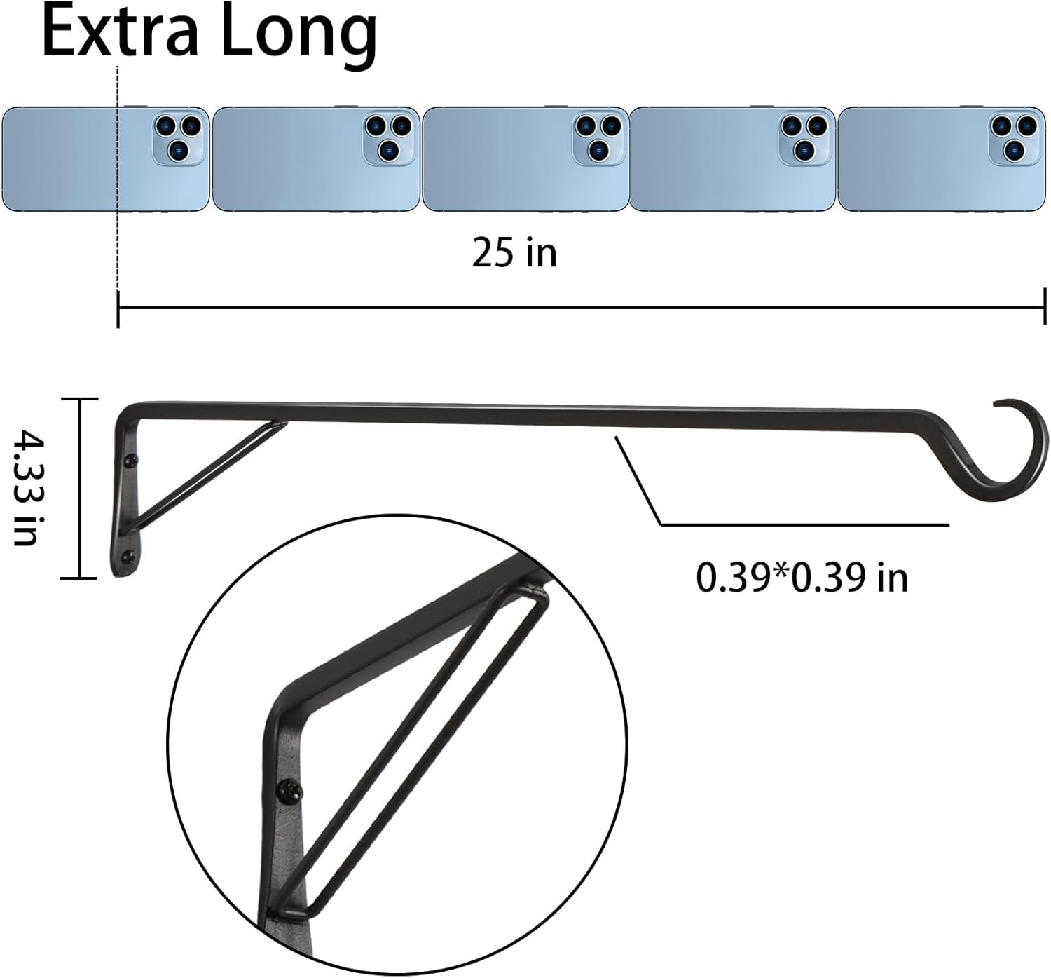 - 2.📏 Maximum Reach for Versatile Decor Reach further with 25" length! Securely hang large plant baskets, bird feeder hangers, or lanterns on high walls/balconies. 2-pack value transforms two spaces instantly—no more unstable short brackets!