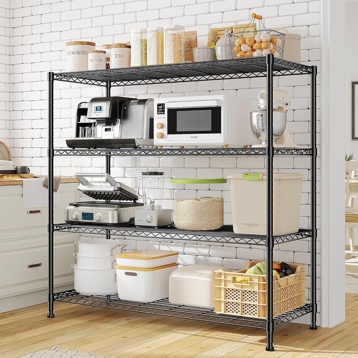 45 "W Metal Shelving Unit 4 Tier Storage Shelves Adjustable Wire Shelving Metal Shelf Pantry Shelves Wire Rack Commercial Shelving for Kitchen Pantry Utility Room Garage 45 "W x 59.4 "Hx 13.5" D Black