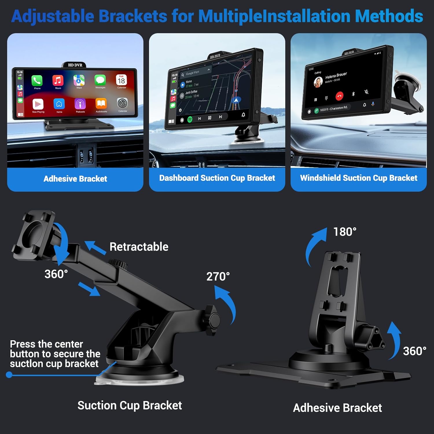 - [Carplay and Android Auto with Voice Control]: HAUXIY Portable Apple Car Screen blends seamlessly with your driving experience, offering a range of connectivity options. Simply talk to Siri or Google Assistant to get directions from maps, make calls, listen to voicemail, send and receive text messages and listen to music. With this intuitive, direct connection, every journey becomes more exciting.