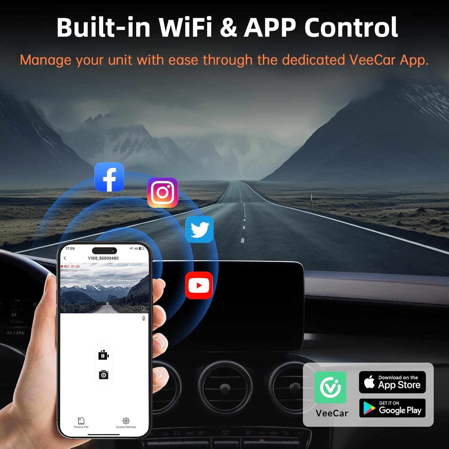 - Special Feature : Built‒in WiFi and APP Control+24H Parking Monitor(Additional Hardwire Kit Needed), G-Sensor+Loop Recording (service-vip@customerafter-sales.com), Super Night Vision+12-Month Replacement Service & 45-Day Refund Guarantee, Type-C Port+Compact Design, UHD 3840*2160P@30fps+2.4” Display Built‒in WiFi and APP Control+24H Parking Monitor(Additional Hardwire Kit Needed), G-Sensor+Loop Recording (service-vip@customerafter-sales.com), Super Night Vision+12-Month Replacement Service & 45-Day… See more