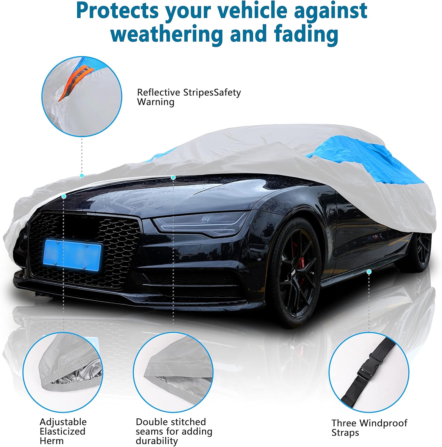 - Wind-Proof Design:Elasticized hem and three fixed buckles help cover against to strong wind,protect your car cover in heavy wind from blowing off.