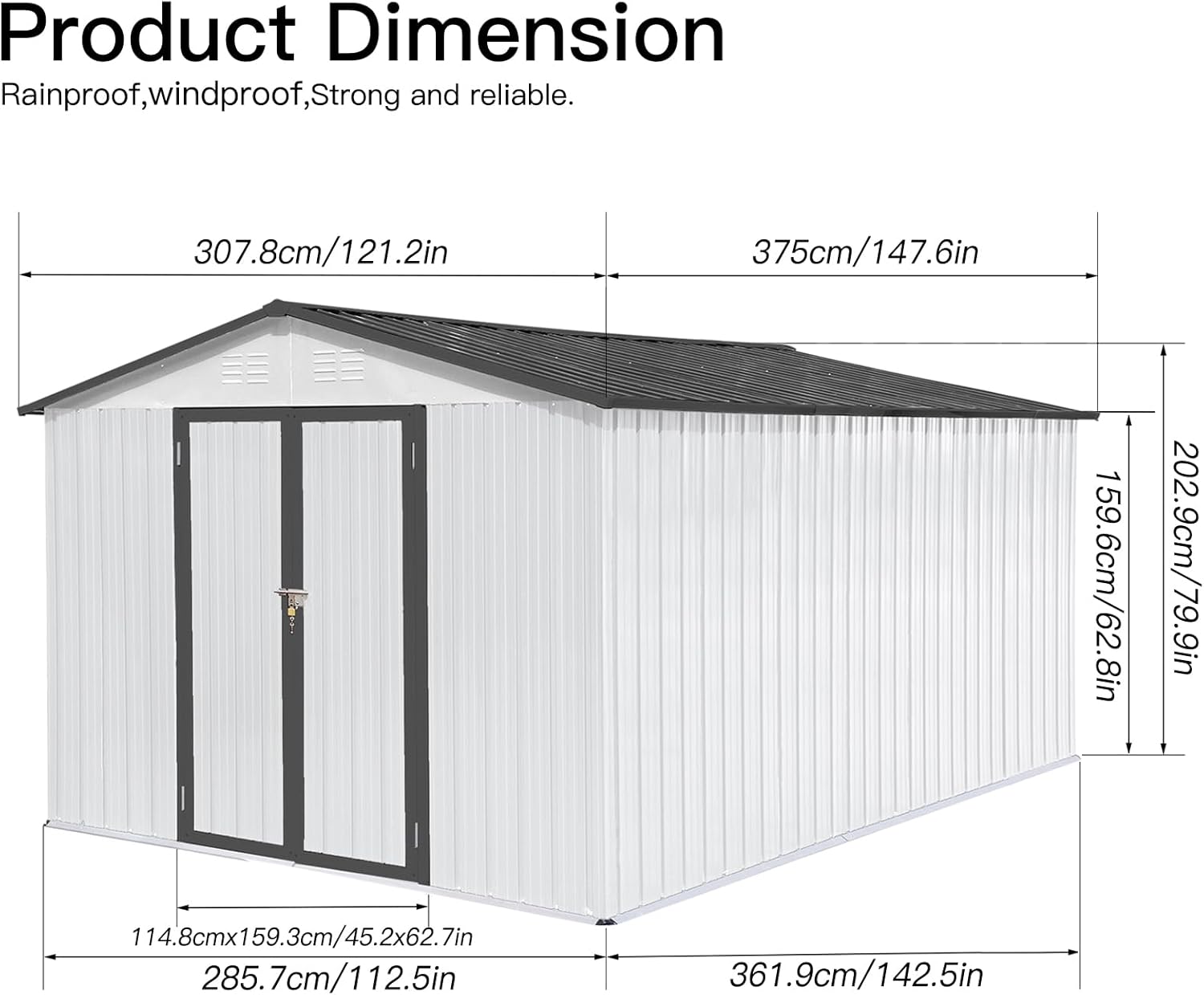 - Long-Lasting Ventilation System: Engineered with two integrated punched vents (far more durable than standard plastic vents), this storage building maintains consistent airflow year-round. The metal vents won't yellow, crack or deteriorate over time, effectively preventing moisture buildup that can damage your valuable stored equipment and seasonal items.