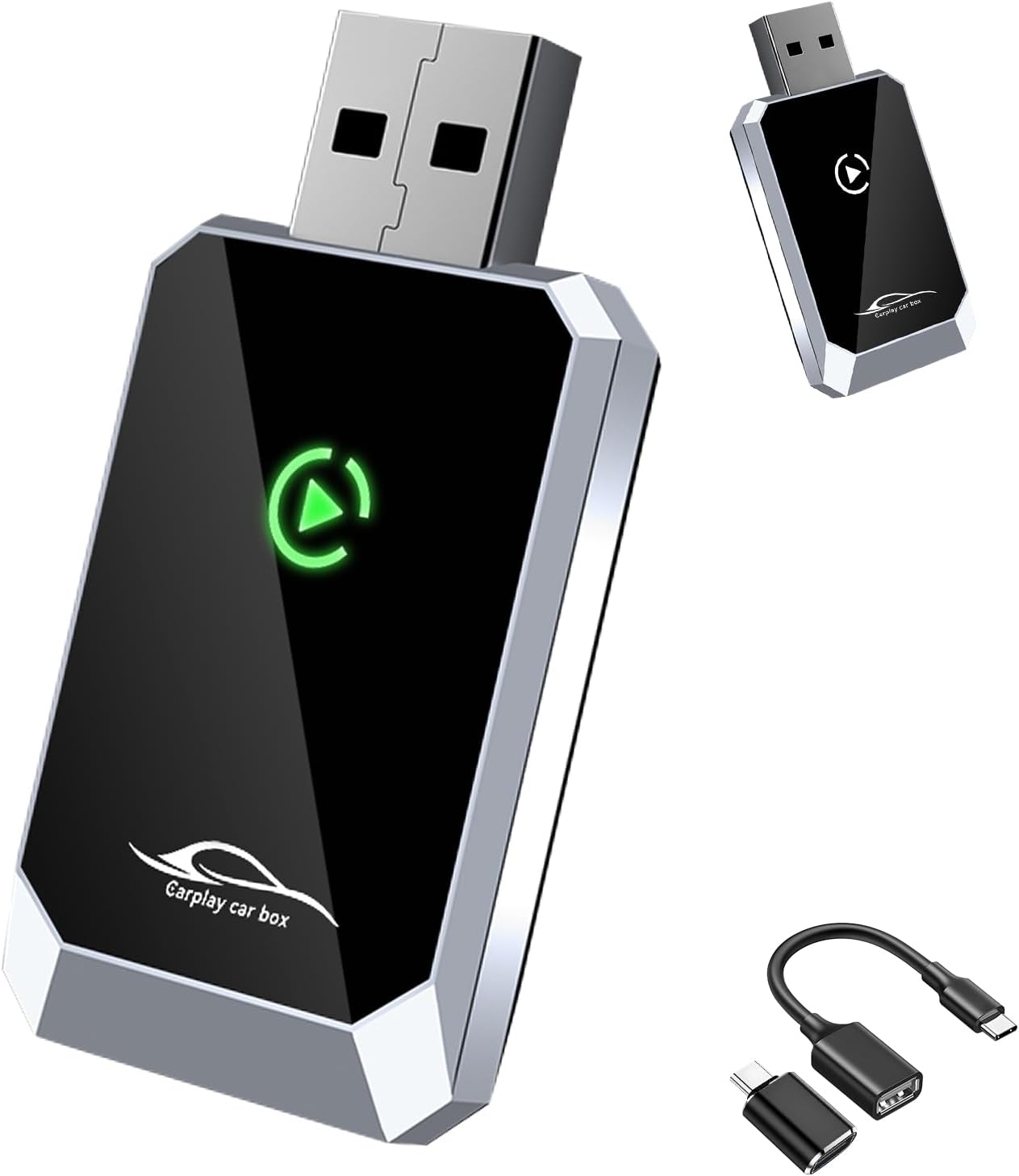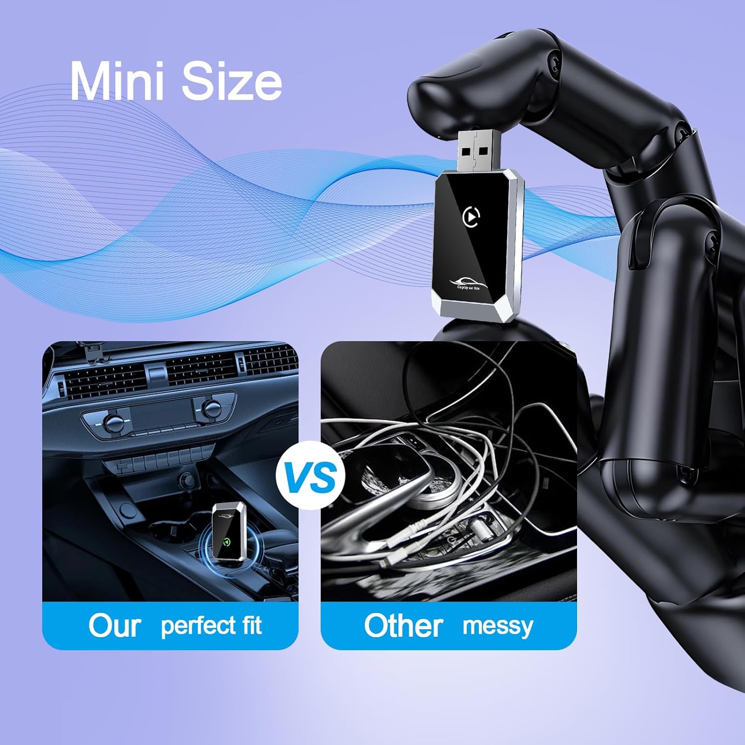 - 2-in-1 Wireless Carplay Adapter: 2025 Upgraded Wireless Carplay, plug and play, enjoy hands-free access to Siri, calls, Maps, Spotify, Messages, and more, suitable for 98% of cars (this car supports wired Carplay)