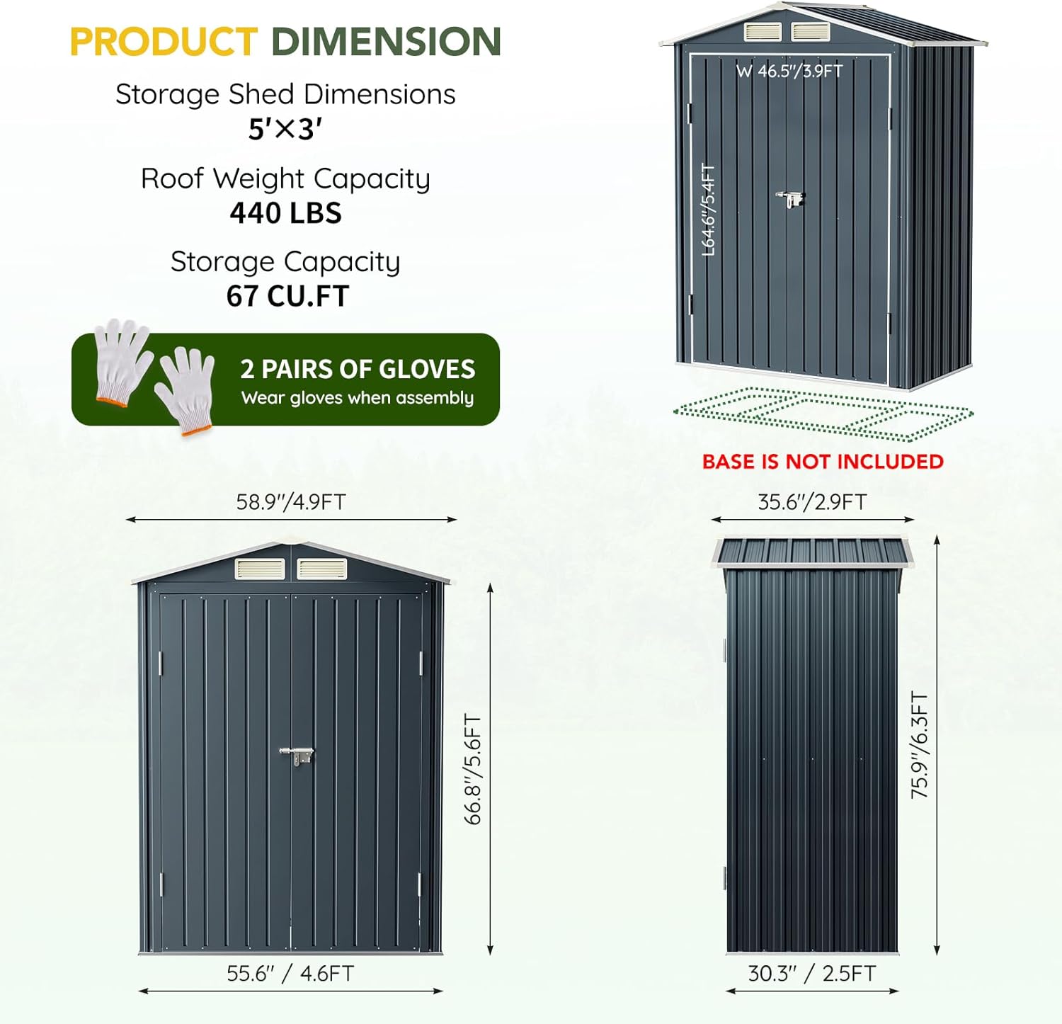 - Steel Construction & Compact Size: This shed is ideal for storing garden tools, bicycles, pool supplies, and seasonal equipment in limited outdoor spaces.