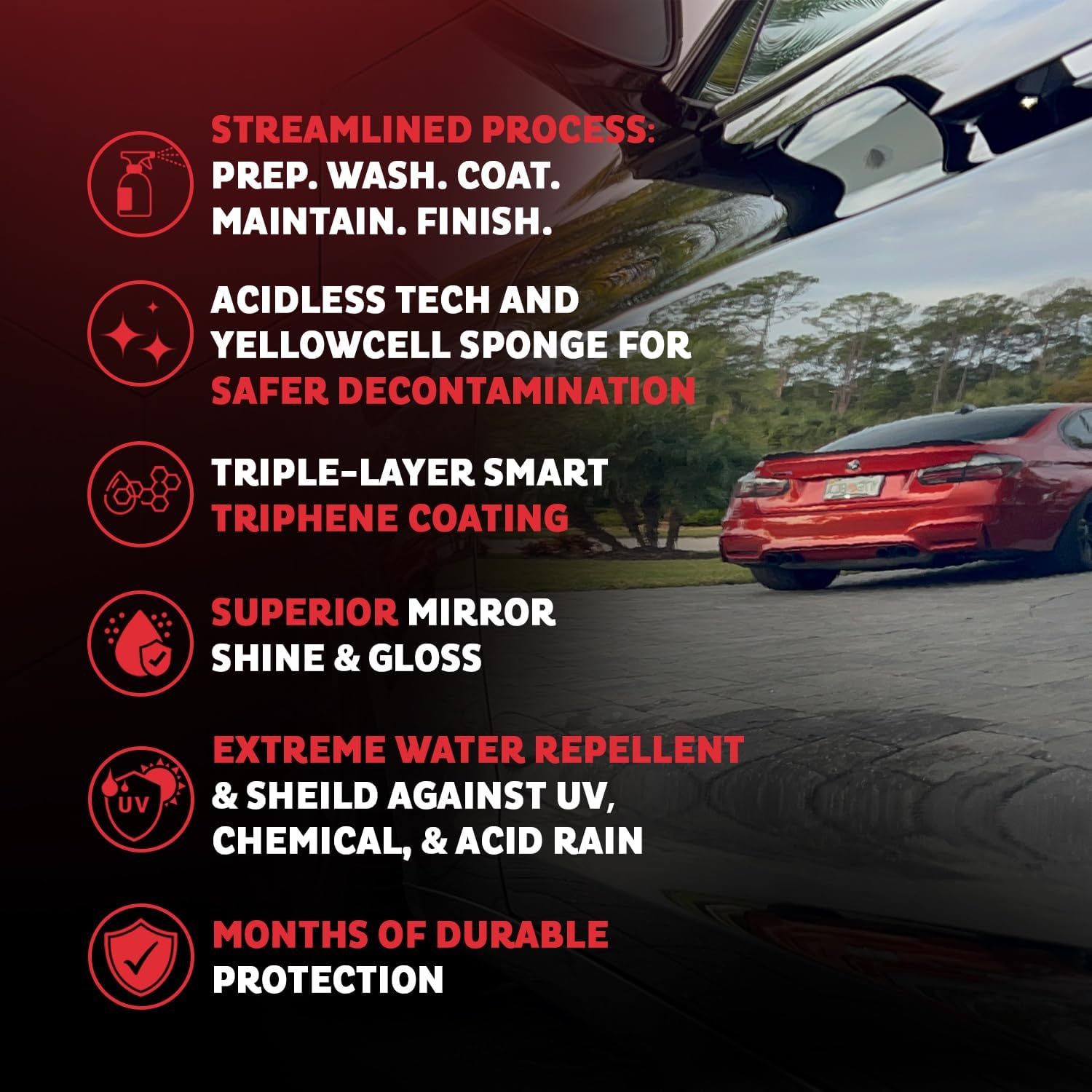 - Apply MAXEasy Triphene Instant Coating in seconds, just spray, rinse, and dry. This advanced maxl spray coating triphene instantly bonds to paint, trim, and glass, delivering a rich gloss and long-lasting hydrophobic protection. It's the perfect addition to any car wash kit or motorcycle cleaning kit for quick, durable shine.