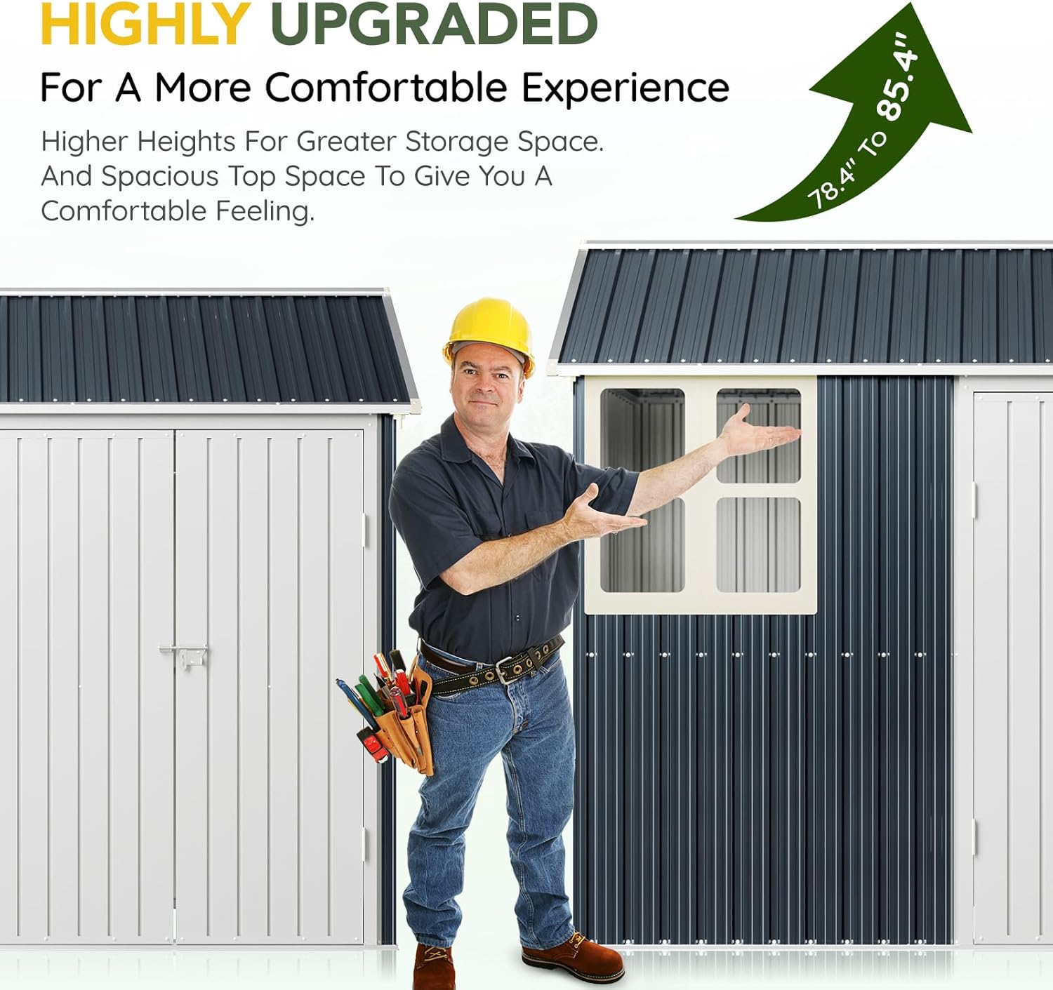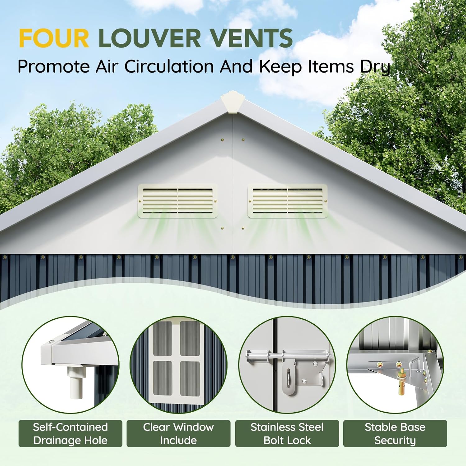 - Durable Construction: Crafted from galvanized steel, this shed is rust-resistant and weatherproof, ensuring long-lasting durability even in tough outdoor conditions.