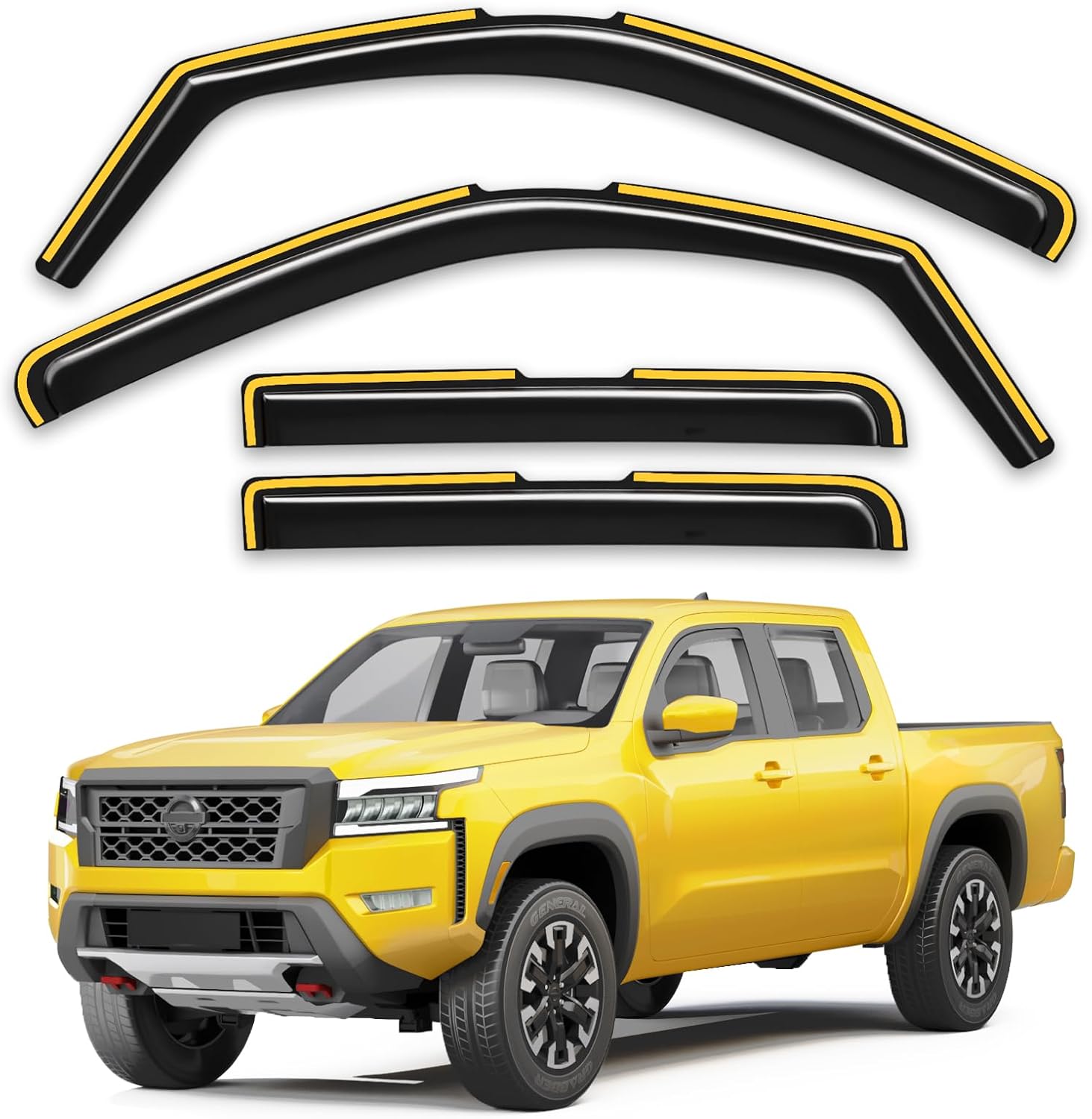 in-Channel Window Rain Guards Fit for Truck Nissan Frontier 2022-2025 Crew Cab Extra Durable Window Deflectors Vent Visors Shades Car Accessories Visors Rain Guards