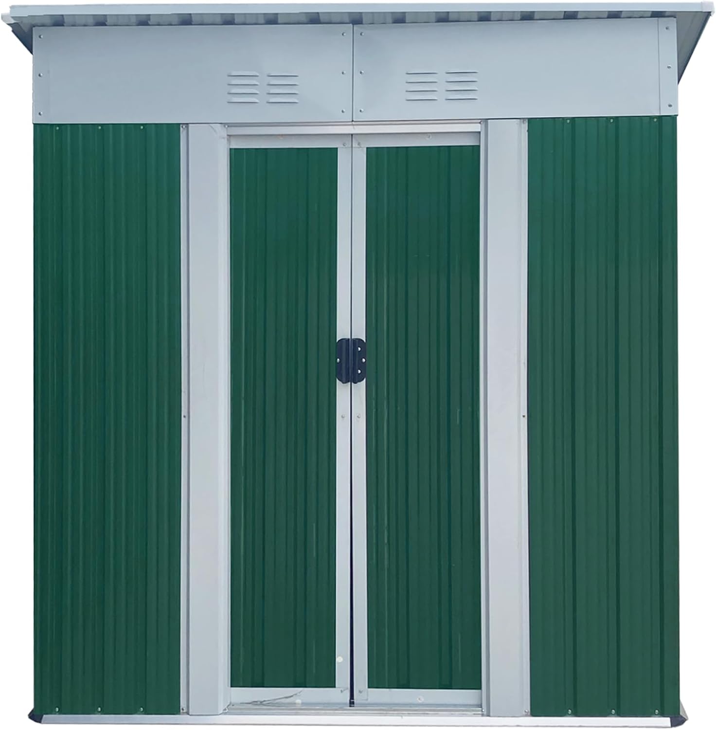 5x3 FT Outdoor Storage Shed with Sloping Roof, Waterproof Metal Garden Sheds w/Lockable Sliding Doors and Vents, Weather Resistant Tool Storage House for Backyard, Patio, Lawn, Green