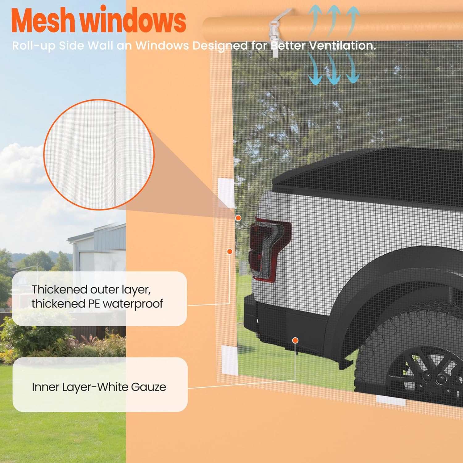 - 【Easy installation & disassembly】Our portable car tent comes with installation instructions, making it easy to assemble without requiring too much time and effort. Spring buckles and elastic ball components make installation and disassembly a breeze.