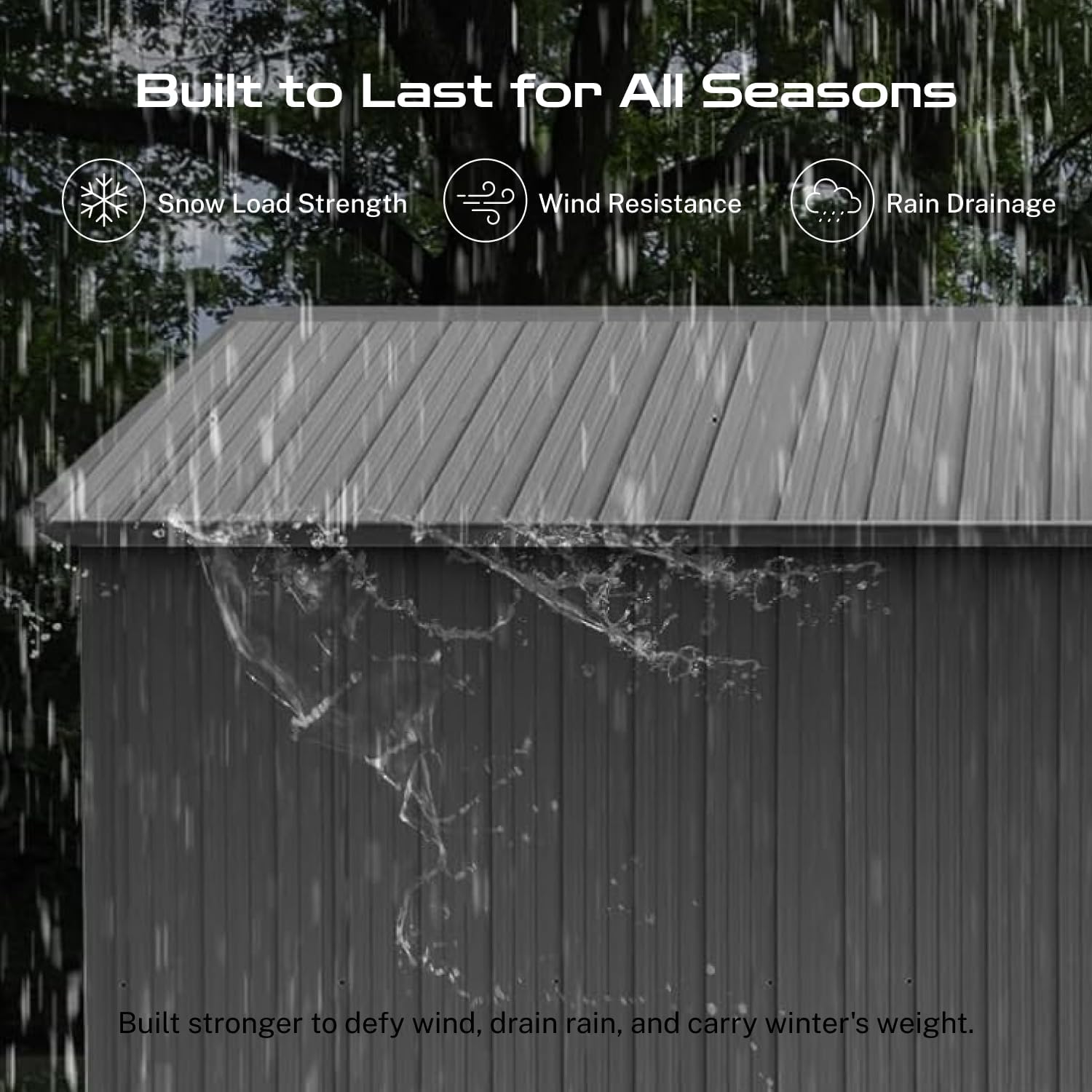 - ๐ [Durable All-Metal Construction] Engineered for lasting performance, this robust metal storage shed is crafted from premium. The heavy-duty steel panels and reinforced frame create a reliable storage house built to withstand harsh weather, seasons, and frequent use, ensuring your casita de patio remains a sturdy sanctuary for years