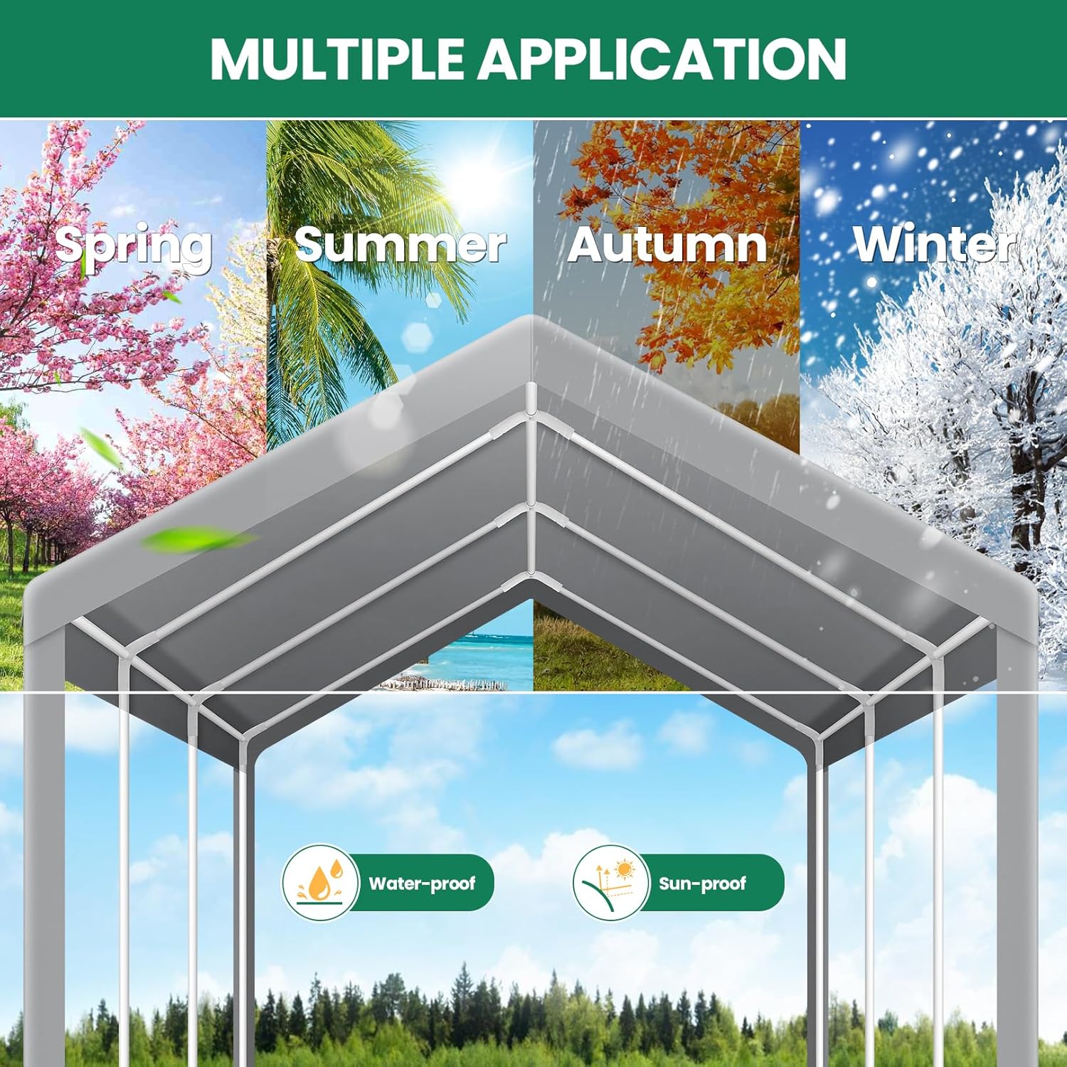 - 【Heavy Duty Structure】 Carport shelter is crafted from a rust-resistant powder-coated steel frame, effectively preventing chipping, peeling, rust, and corrosion. With 8 solid legs made of 1.5-inch galvanized steel pipes, it ensures enhanced safety and stability.