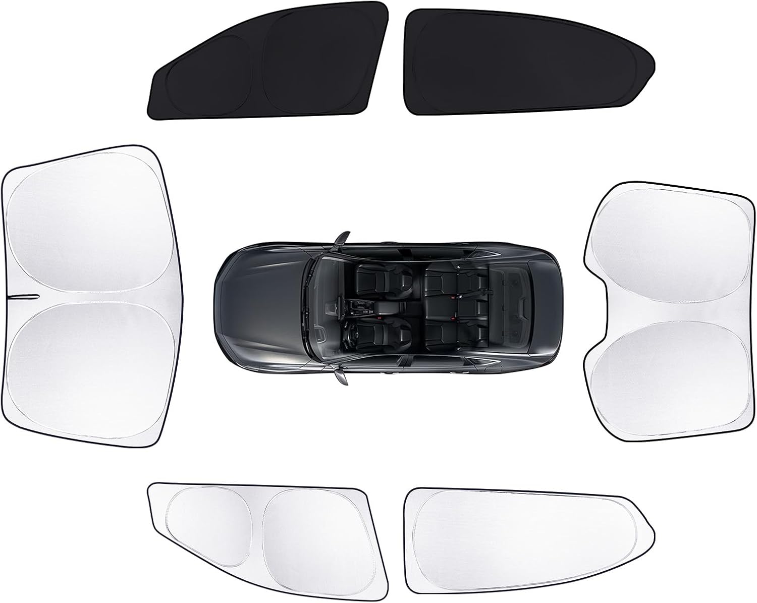 - All-new upgrade: Each sun visor is covered with a silver metal aluminum layer on the outside and black on the inside. Compared with the all-black sun visor, the silver sun visor can better lower the temperature inside the car. Meanwhile, when you need to use the black sun visor, just flip it over for use
