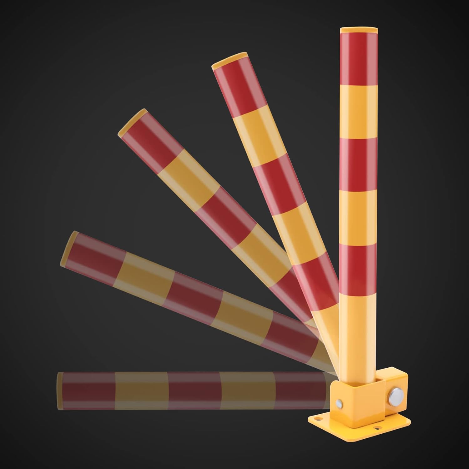 23In Q195 Iron Pipe Safety Bollard Yellow & Red Parking Barrier, Automatic Locking Folding Metal Post with Warning Stripes for Lots, Storefronts, Entrances