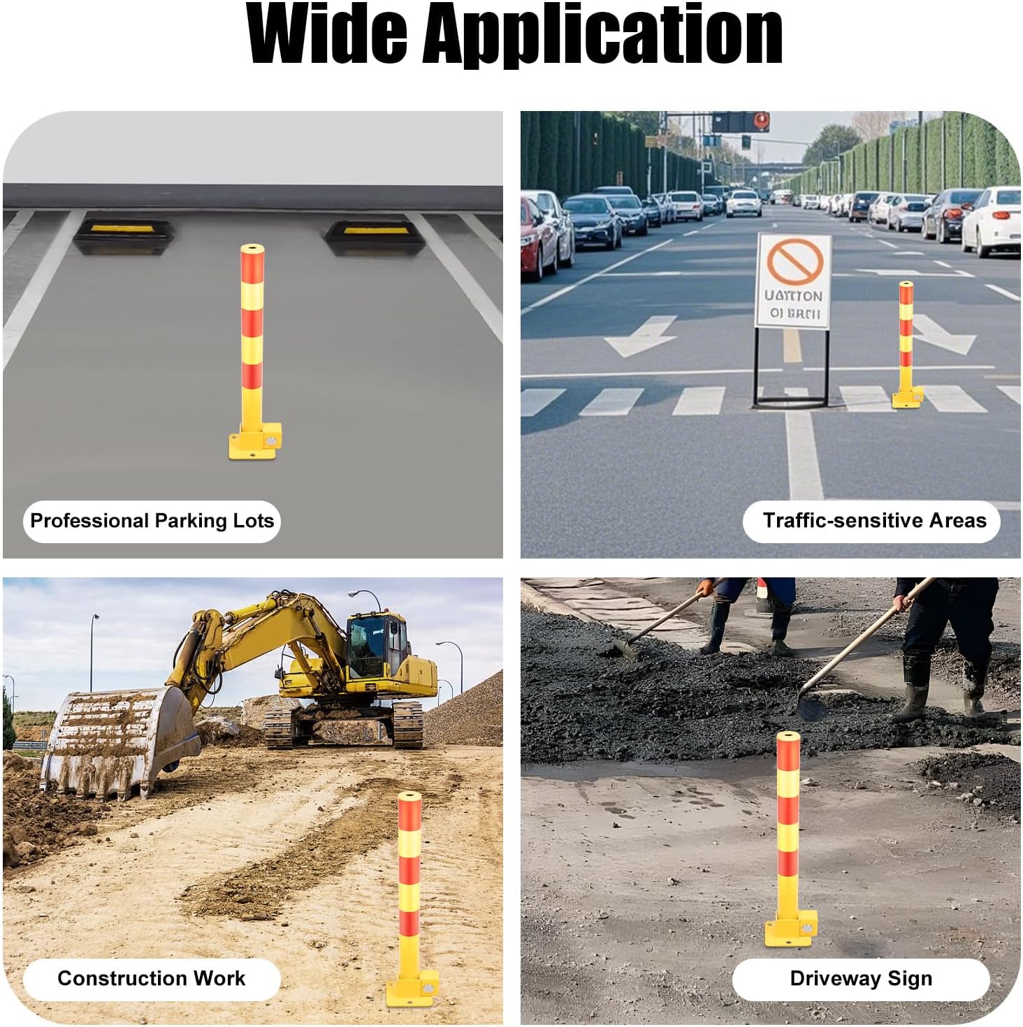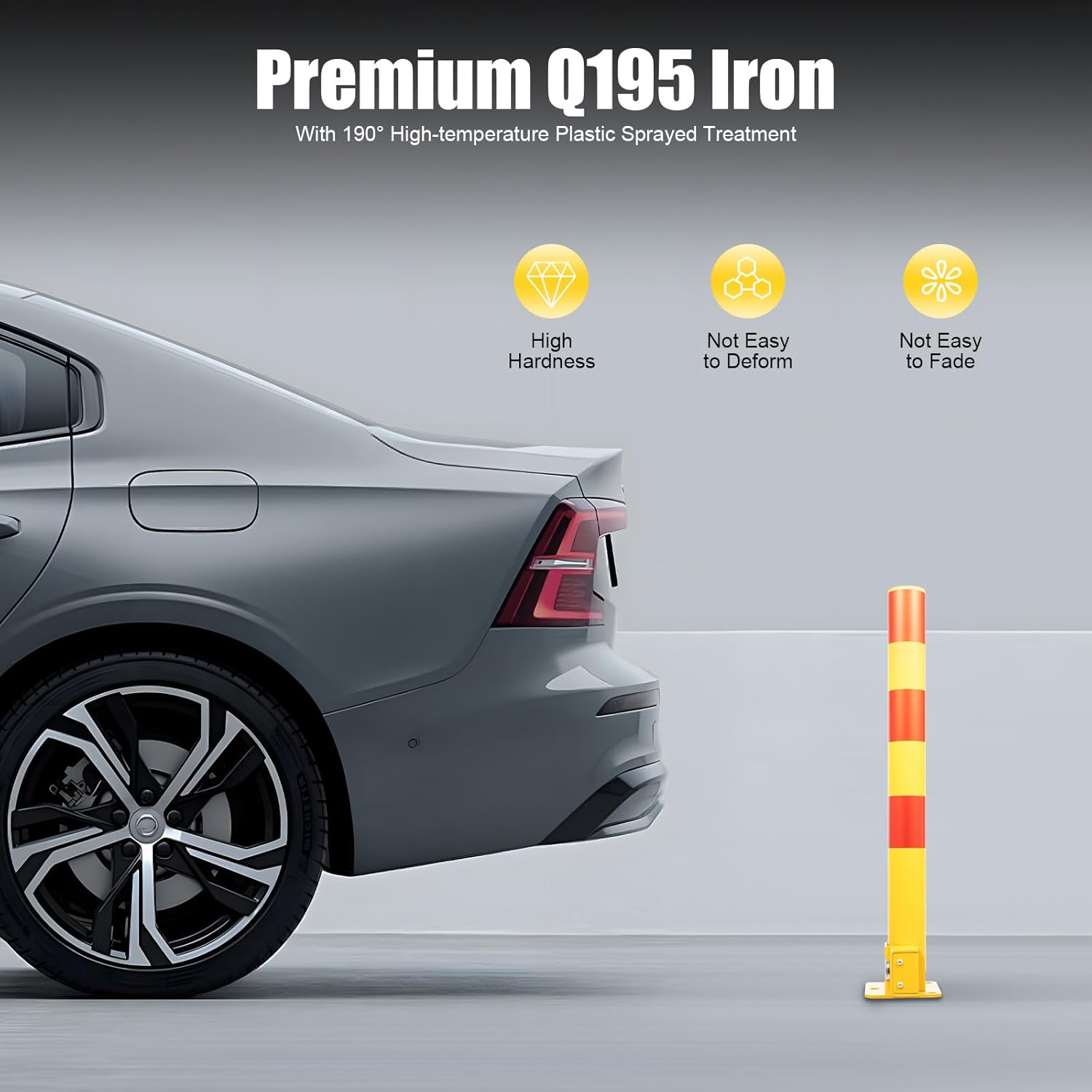 - High Quality: This parking post is made of Q195 iron pipe with high hardness, strength, and durability. The surface is sprayed with 190° high-temperature plastic treatment, which will not lose color for a long time.