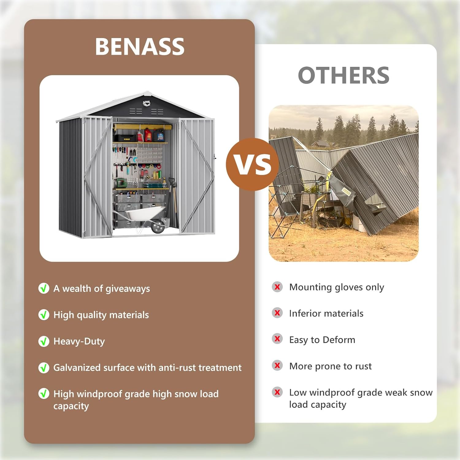 - 【Easy Assembly & Customer Support】:The tool shed includes clearly labeled components, detailed assembly instructions, and protective gloves to ensure an efficient setup. Assembly by 2-4 adults is recommended. For any questions or assistance during assembly or usage, please reach out directly to our friendly customer support team.