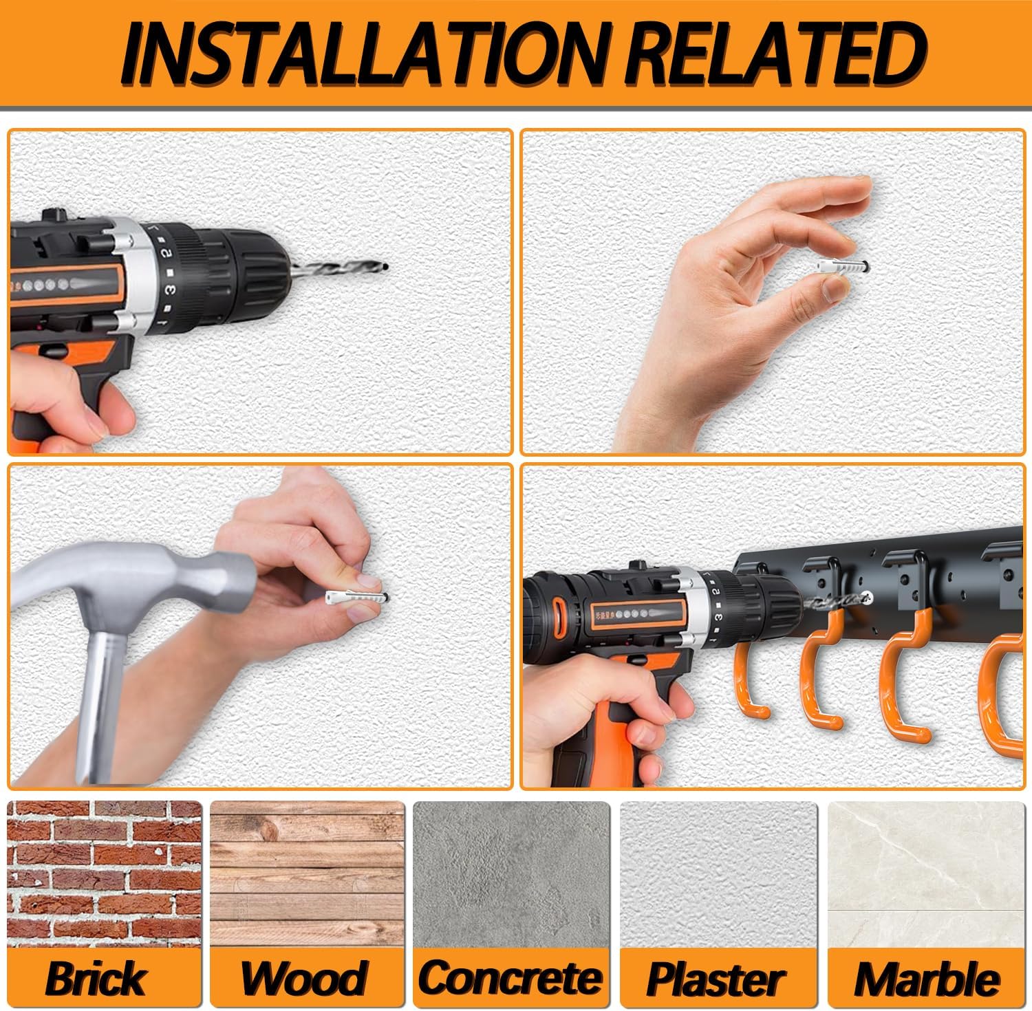 • Versatile tool hangers for garage wall: Ideal for garages, basements, or sheds, this power tool organizer wall mount provides neat storage for mops, shovels, brooms, and a variety of yard tools. The garage wall organizer's design ensures convenient storage and easy access to your tools. Plus, the broom and mop organizer wall hanging is easily expandable you can add 2 or more broom rack wall mount as your needs change over time