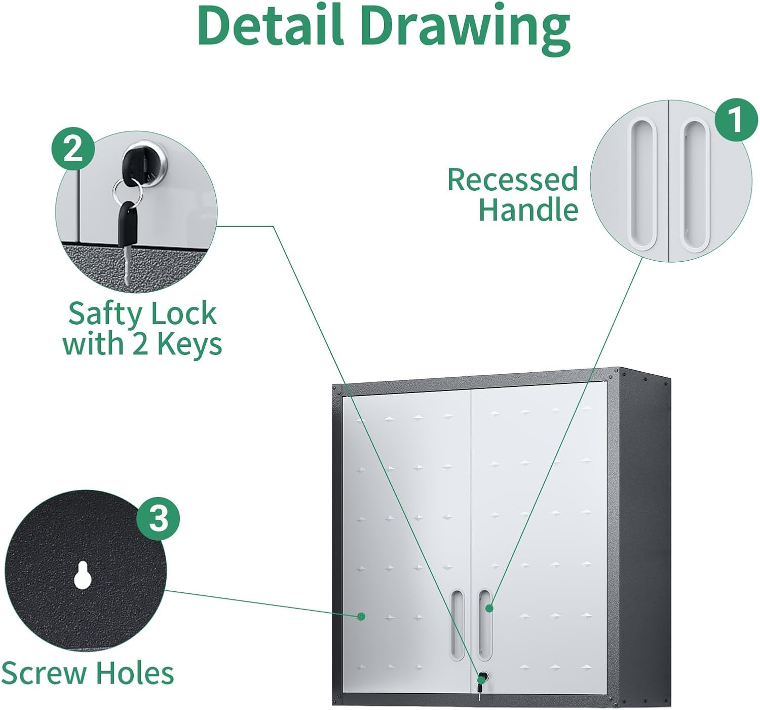 - Multi-scene Use: Wall cabinet is suitable for home, garage, warehouse, kitchen, tool room, especially for garage and tool room, for you to place tools and daily necessities to provide sufficient safe storage space, keep the room clean.