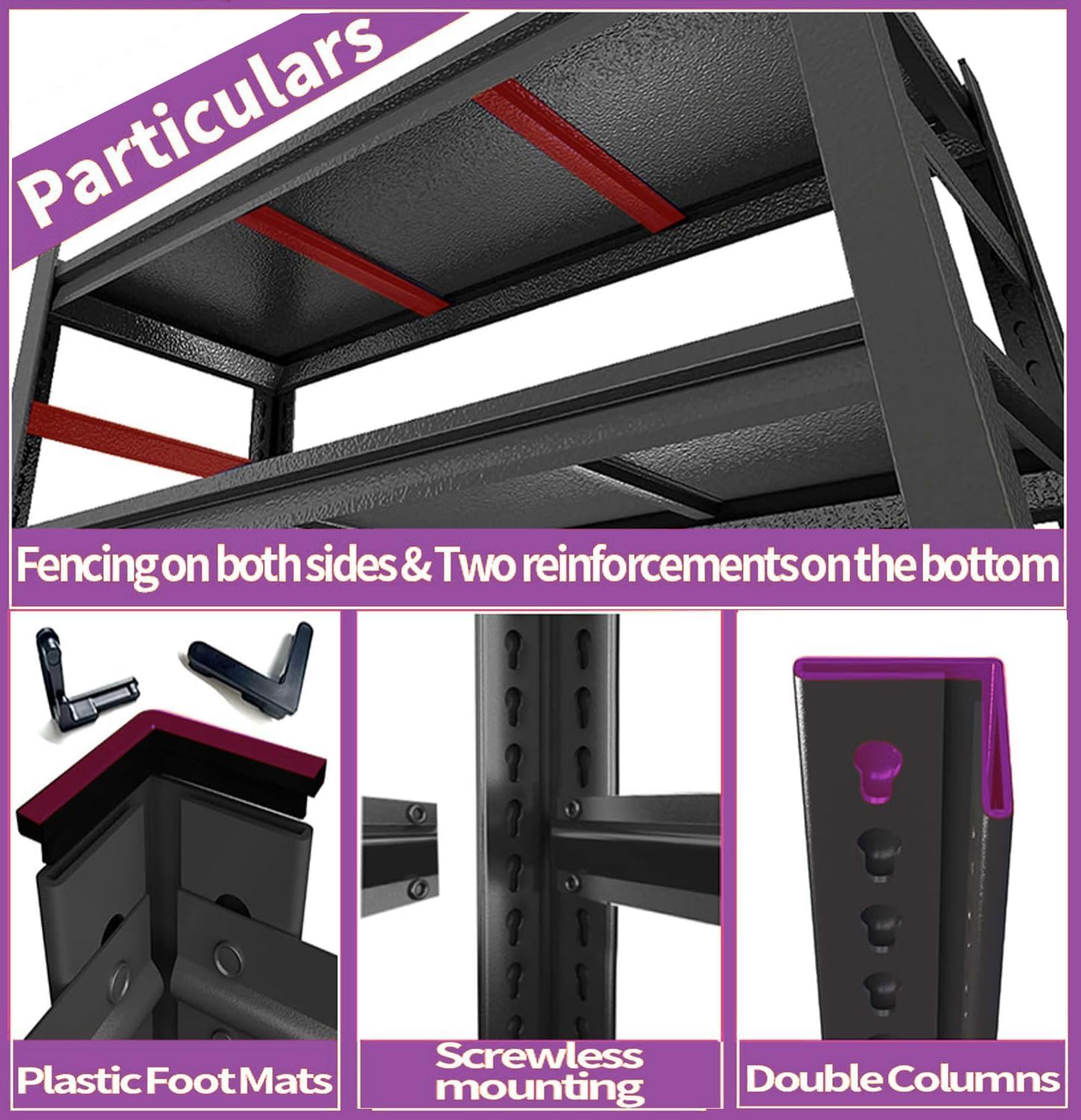 - ăQuick installation of a set of garage storage shelves in 10 minutesăThis metal storage shelf adopts an interlocking design, which does not require any bolts or nuts for installation. It does not even require any installation tools. A set of 5-Tier metal shelves can be installed by hand in 10 minutes.