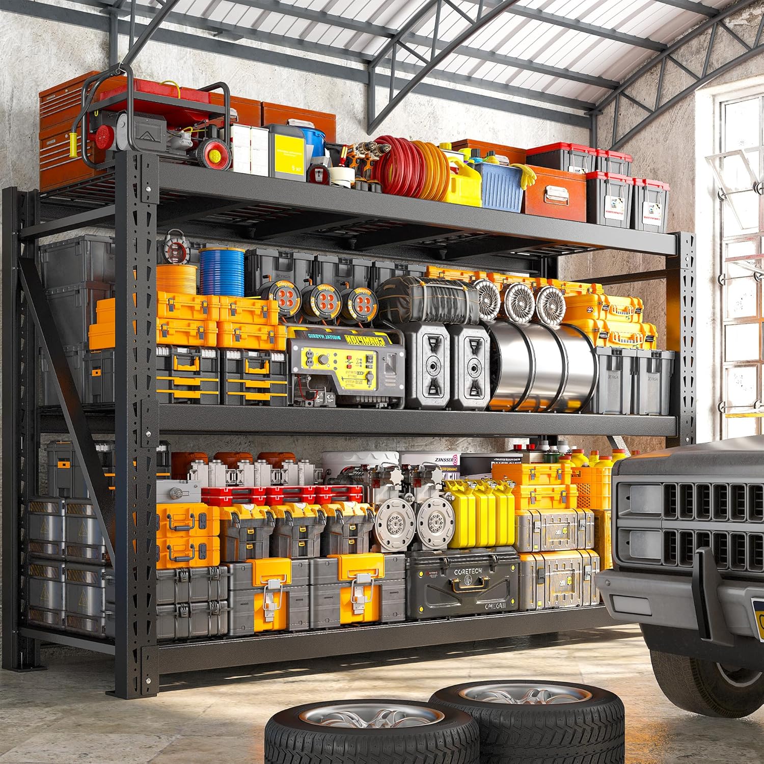 - 【77" W*23.7" D*66.2" H Extra Wide Heavy Duty Shelving】Extra wide metal shelving unit is suitable for garage, warehouse, commercial( business products & services, retail & distribution, industrials), storage room, kitchen, basement, etc. 3 tier garage shelves not only extends your storage space, but also keeps your home neat and organized.