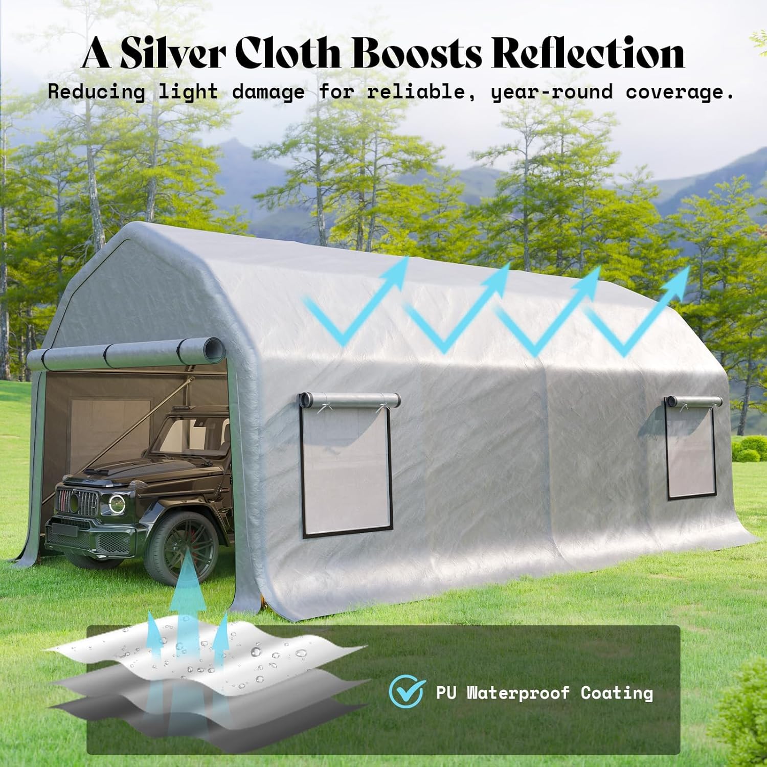 - 【Engineered for Weather Protection】Reinforced roof beams and upgraded top structure keep this heavy duty carport stable in storms, snow, and harsh sun. Wind-tested to withstand up to level 8 winds, it’s designed to resist collapsing and protect your car, boat, or gear outdoors all year