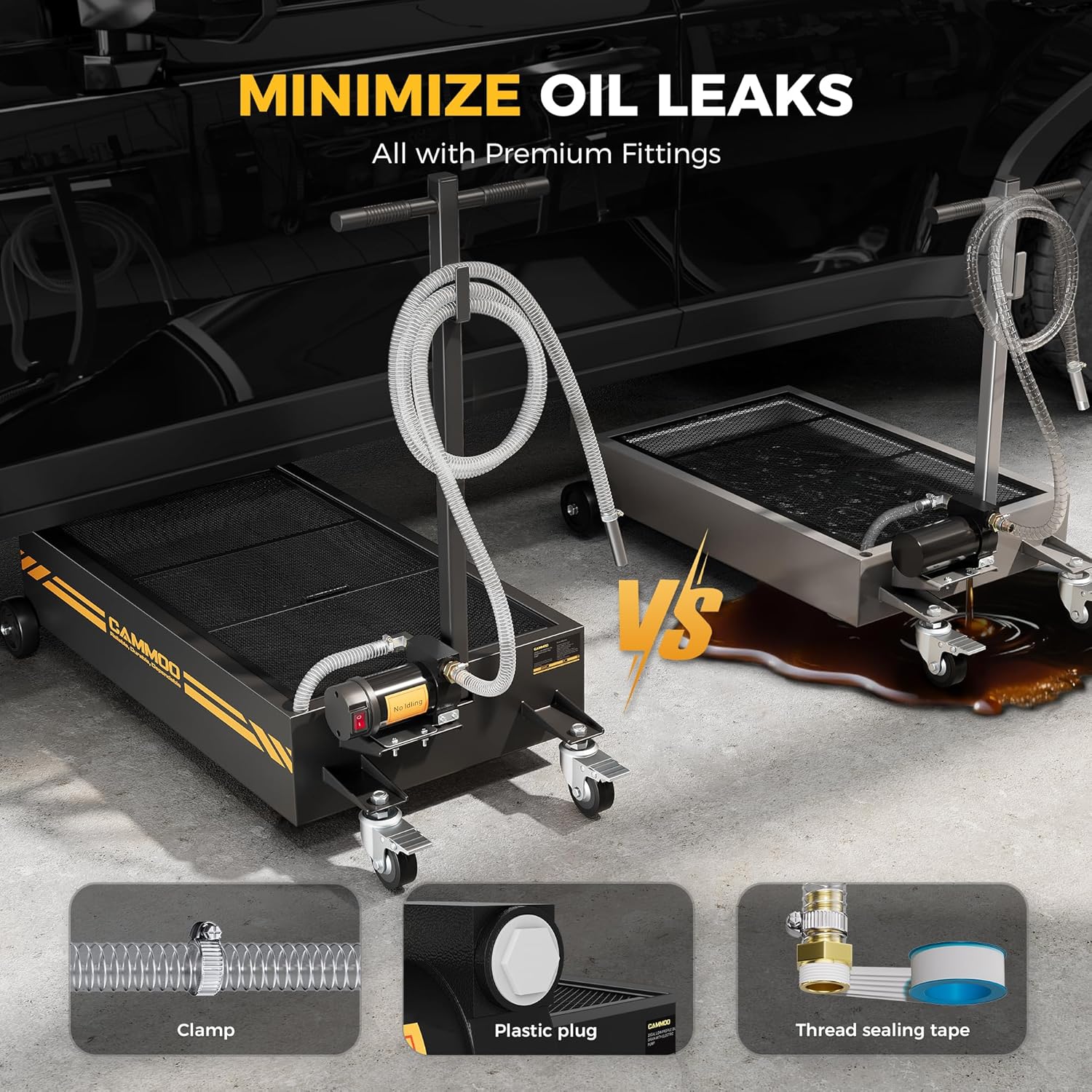• Heavy-Duty Construction:The electric oil change pan has 1.5 mm carbon-steel walls and is 0.5 mm thicker than standard oil change pans, so it resists daily wear, handles heavy hydraulic loads without warping, and stands up to rough movement in busy shops. It features a precision powder-coat finish that fights corrosion, stays rust-free, and keeps the surface looking sharp. Finely welded seams boost load capacity and eliminate leak risks, and each unit is water-tested before shipment to ensure it is a long-lasting, leak-proof tool for shops, fleets, and DIYers.