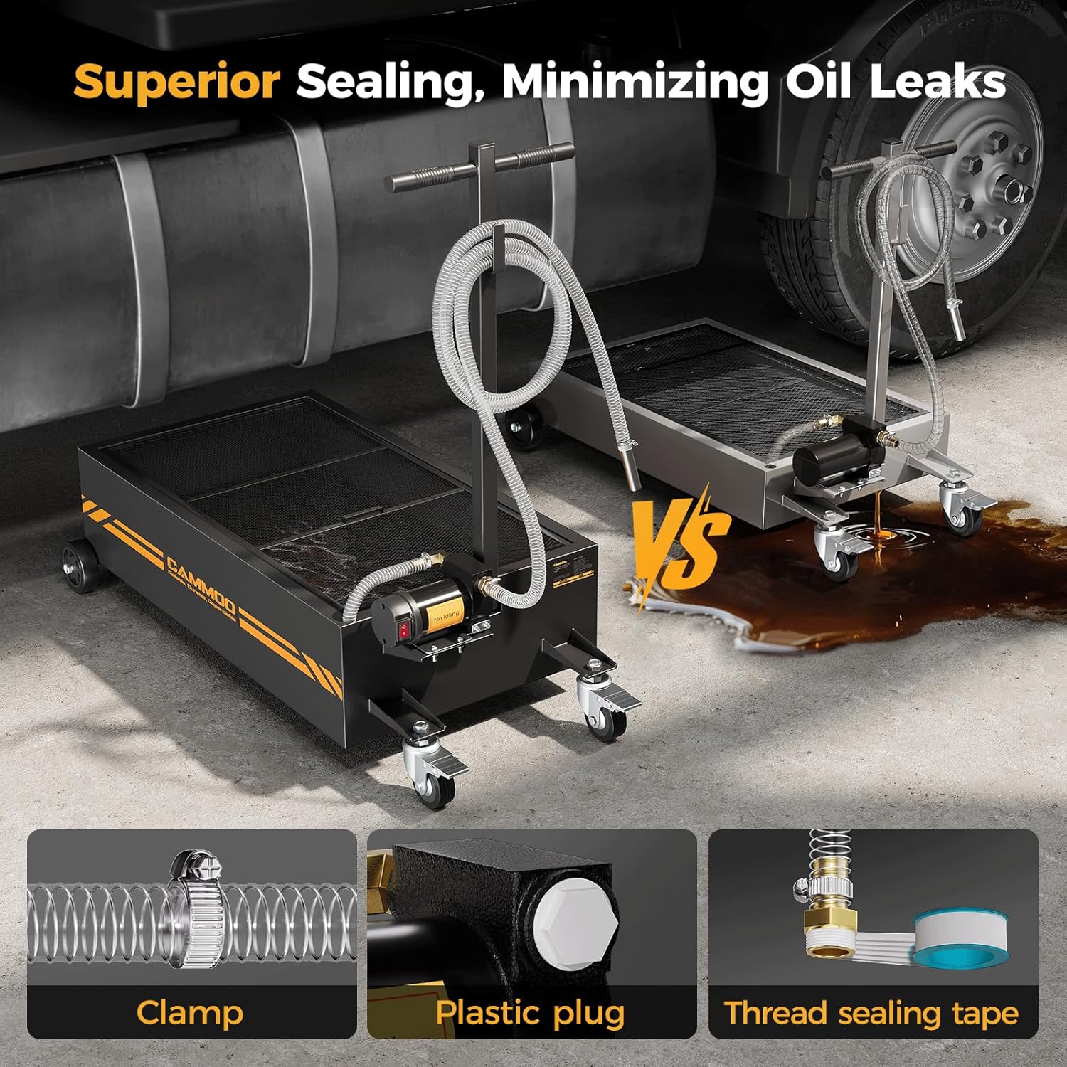 - Heavy-Duty Construction:The electric oil change pan has 1.5 mm carbon-steel walls and is 0.5 mm thicker than standard oil change pans, so it resists daily wear, handles heavy hydraulic loads without warping, and stands up to rough movement in busy shops. It features a precision powder-coat finish that fights corrosion, stays rust-free, and keeps the surface looking sharp. Finely welded seams boost load capacity and eliminate leak risks, and each unit is water-tested before shipment to ensure it is a long-lasting, leak-proof tool for shops, fleets, and DIYers.