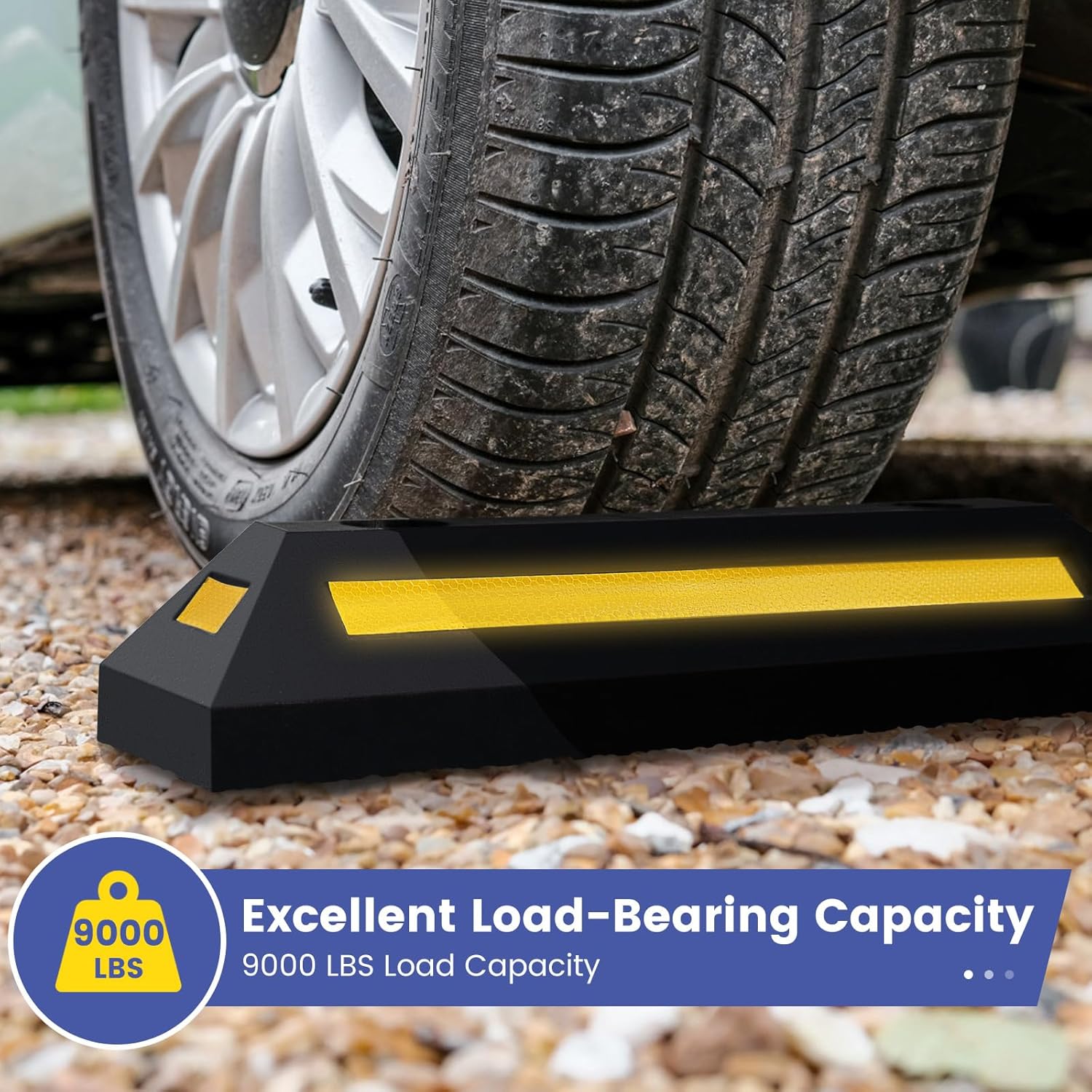 - Heavy Duty Wheel Stopper: Built from flexible rubber with honeycomb base for maximum grip, this parking stop supports loads up to 9,000 lbs. Its slip-resistant design ensures stability on uneven surfaces under heavy weight.