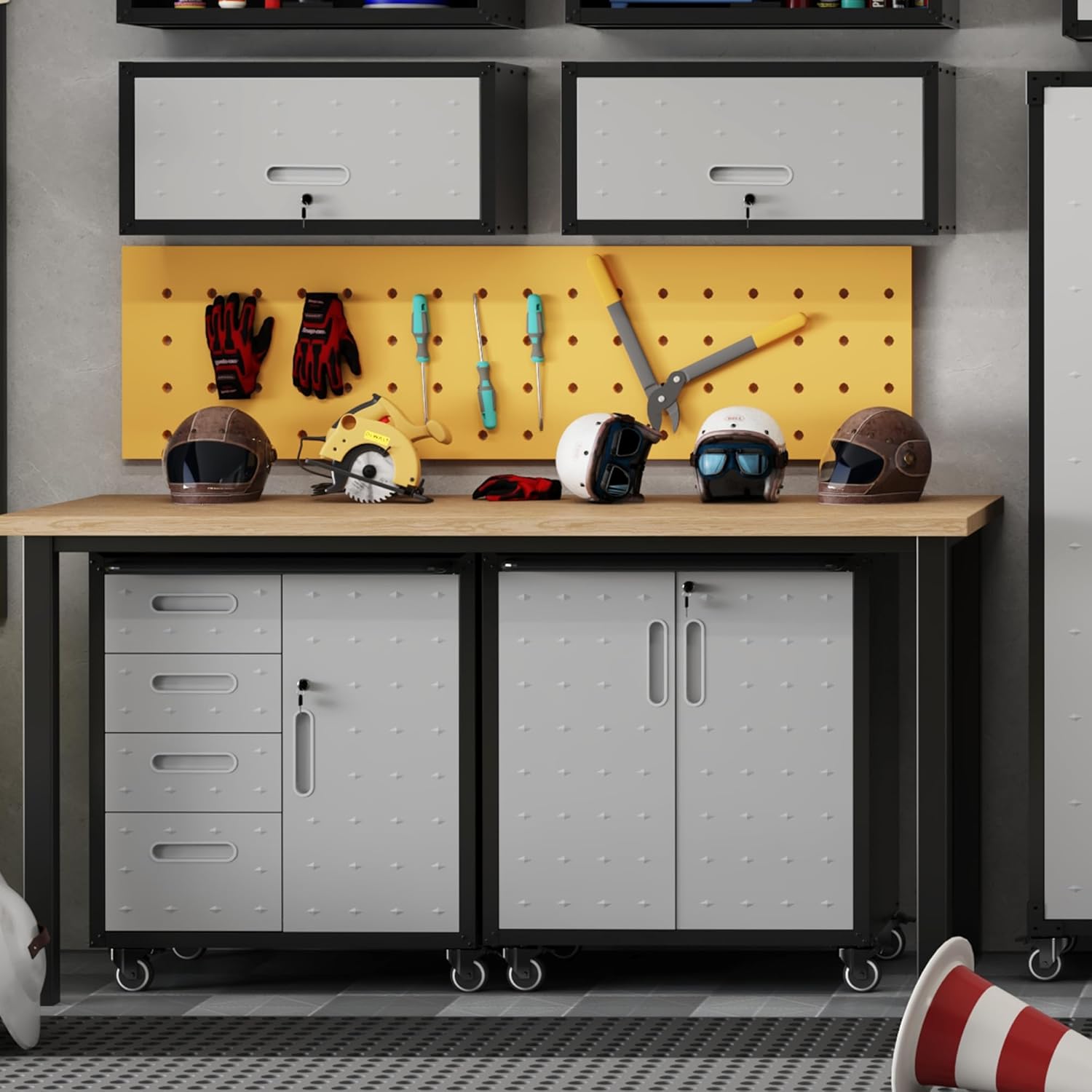 Metal Tool Cabinet,Garage Storage Cabinet System,Wall Cabinet & Locking Rolling Tool Cabinet with Doors and Adjustable Shelves,Steel Tool Cabinets for Home,Office (2 Pcs-Styled, Black & Grey)