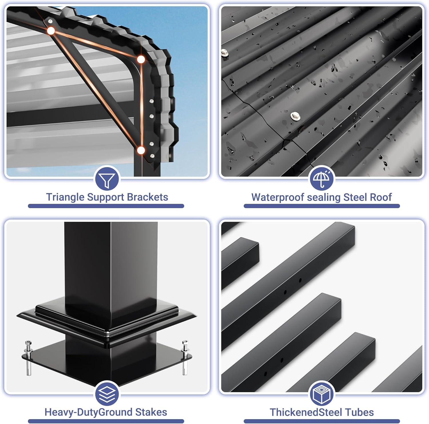 - 【Safety-Focused Design】Waterproof roof seals and soft rubber edges prevent leaks and injuries. The upgraded structure prioritises your safety while ensuring years of reliable shelter.