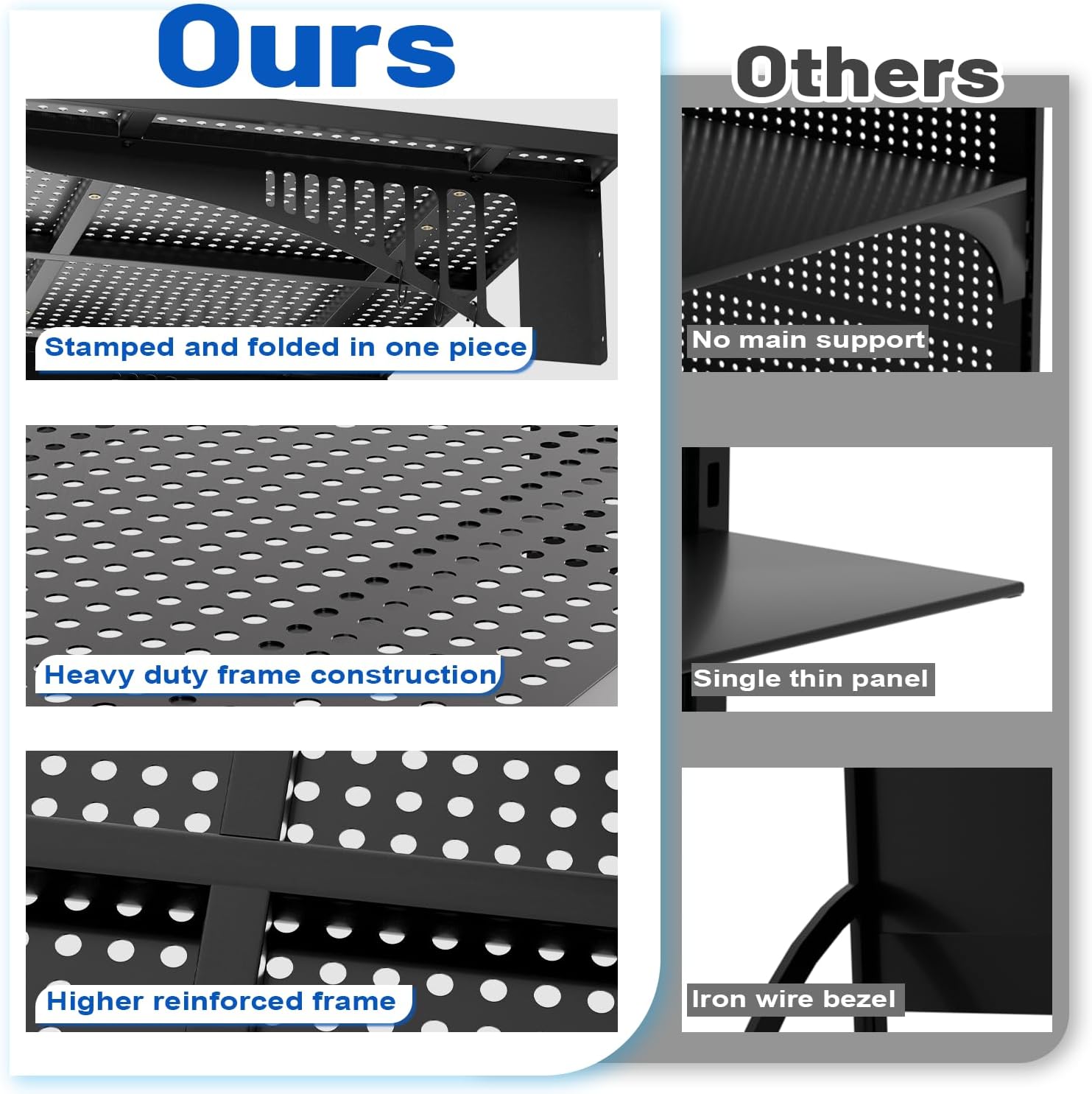 - Rigorous Load Testing: Rigorously tested to support a total weight capacity of 600 lbs across two shelves, providing unmatched strength for heavy items like tools, bins, or equipment, with no bending or warping under stress.