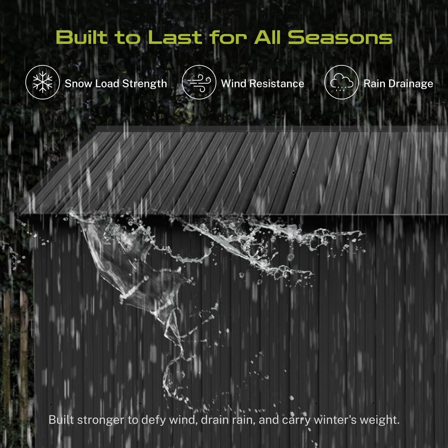 - ๐ [Durable All-Metal Construction] Engineered for lasting performance, this robust metal storage shed is crafted from premium. The heavy-duty steel panels and reinforced frame create a reliable storage house built to withstand harsh weather, seasons, and frequent use, ensuring your casita de patio remains a sturdy sanctuary for years