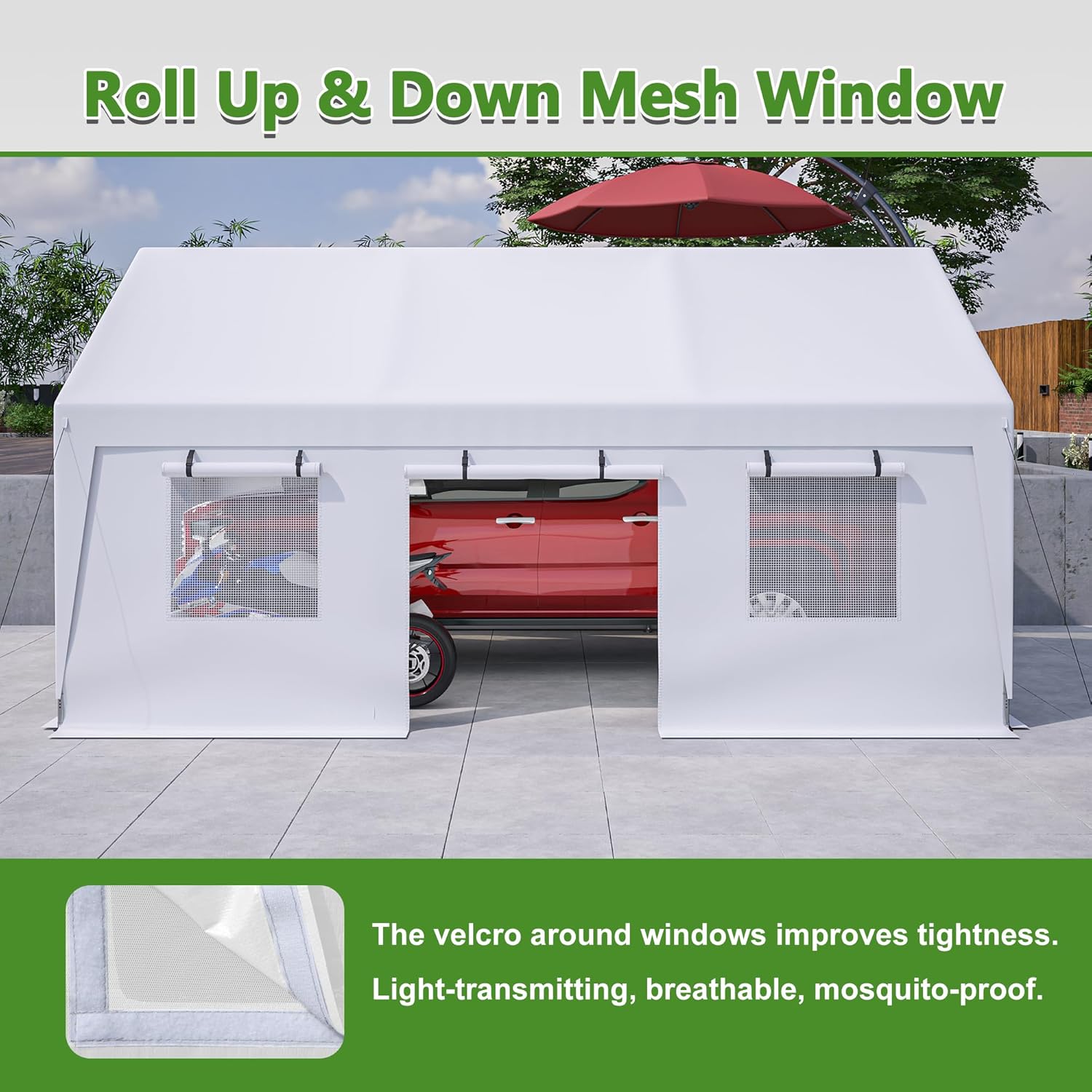 13x20 ft Heavy Duty Carport with Removable Sidewalls & Roll-up Windows, Portable Garage Tent with Doors, All-Season Outdoor Canopy Shelter for Car, Truck, Boat, White