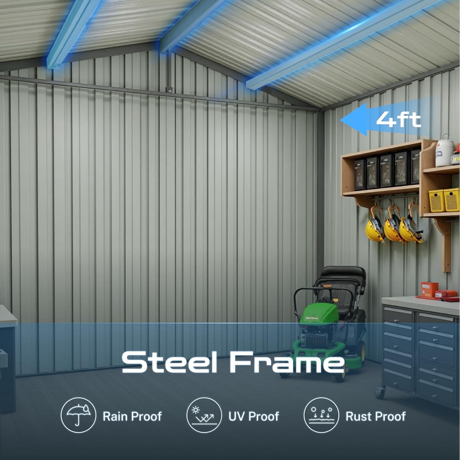 - โ [Sloped Roof for Superior Weather Protection] Designed for real-world conditions, the efficient sloped roof system guarantees optimal rainwater drainage, preventing damaging pooling and leaks. This key feature in our storage buildings and sheds clearance design minimizes maintenance and ensures your tools, equipment, and belongings stay consistently dry inside