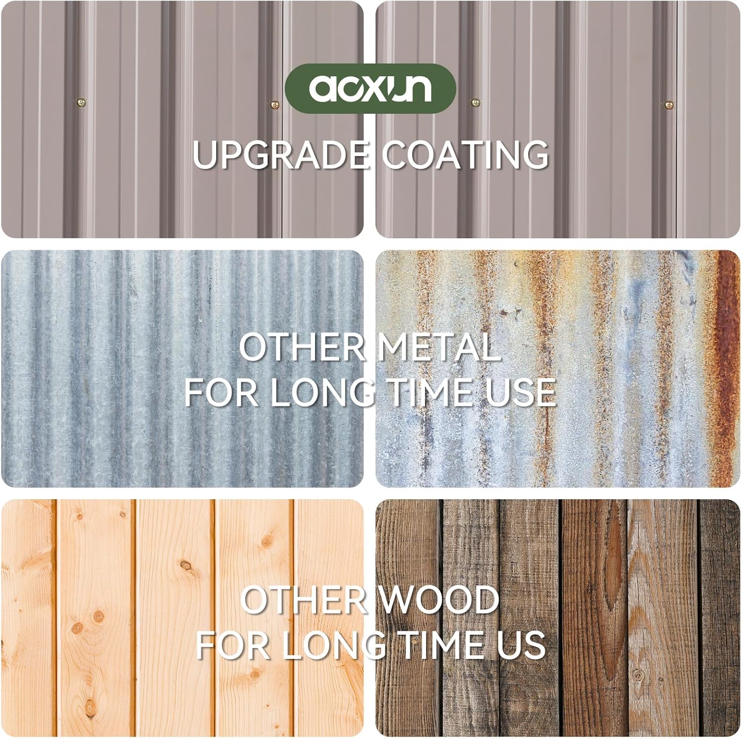 Aoxun 7x5 FT Outdoor Storage Shed Garden Metal Shed with Lockable Door Outdoor Large Shed for Tool, Garbage Can, Bike, Mower, Brown