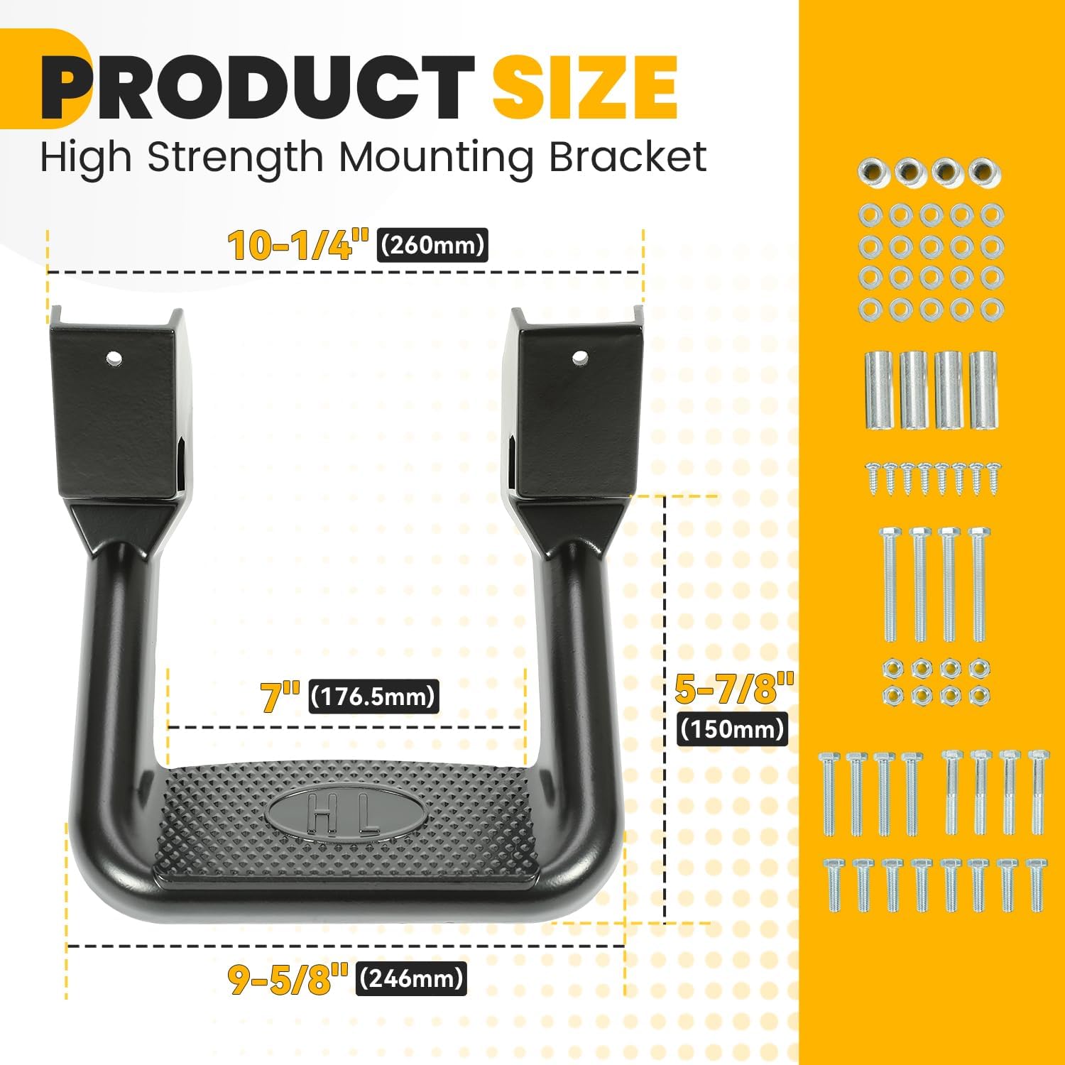 - Excellent Build: Made of cast aluminum, they are durable, easy to clean, these side steps boast a 300 LB load capacity. Provides stable, reliable support for easy vehicle entry/exit, roof access, and cargo handling