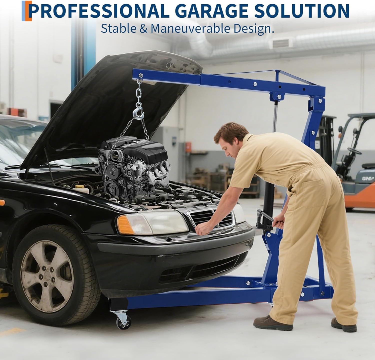 - Wide Applications for Workshop & Garage: This folding cherry picker engine hoist is built for a range of tasks including lifting engines, axles, transmissions, and motor components, serving as a reliable and easy-to-operate motor lift and hydraulic engine hoist for both professionals and DIY enthusiasts