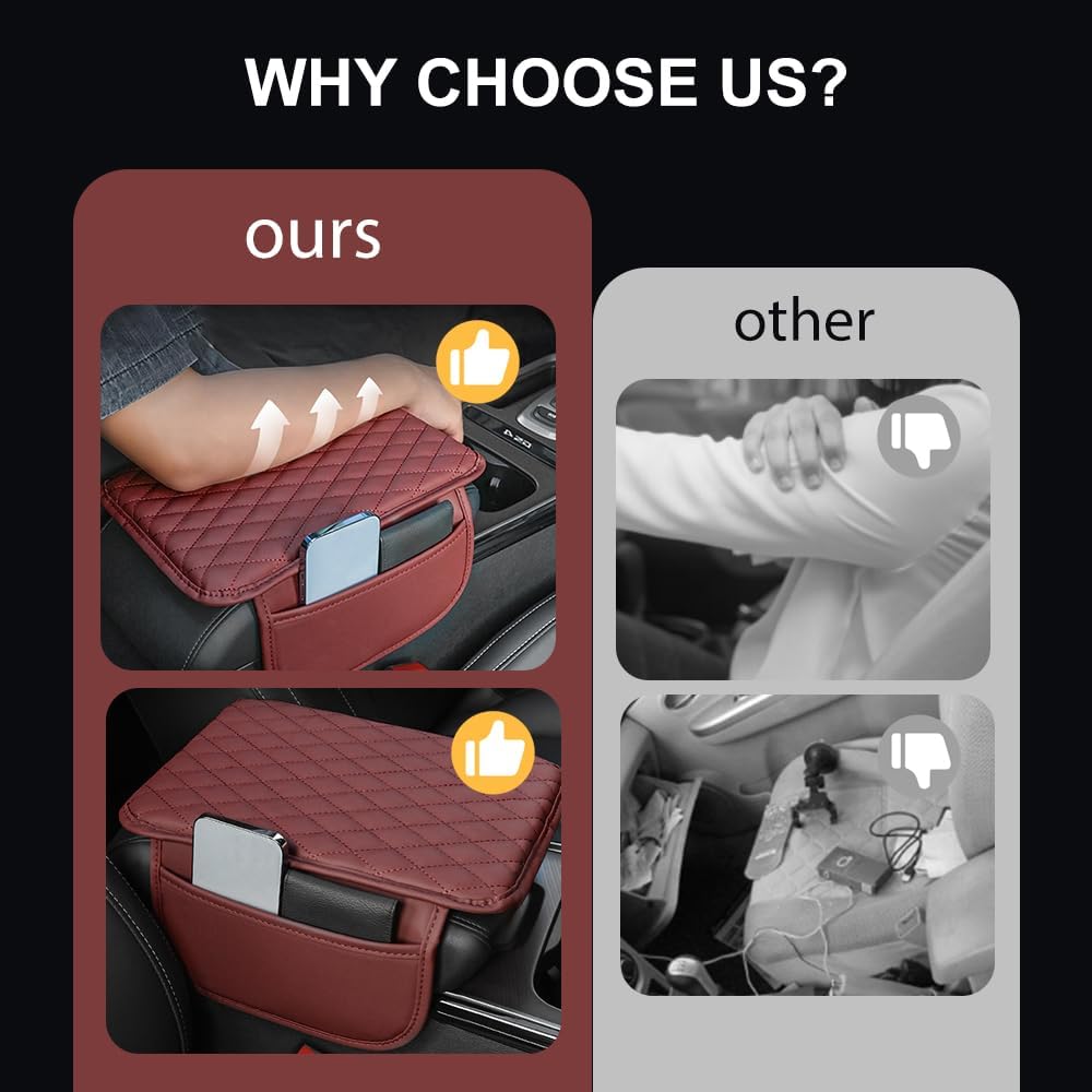 - Use elastic bands to fix the armrest box cover on the center console without any tools. The arm rest cover is a good interior accessory for truck, auto, suv, van, vehicles, minivans, and automotive