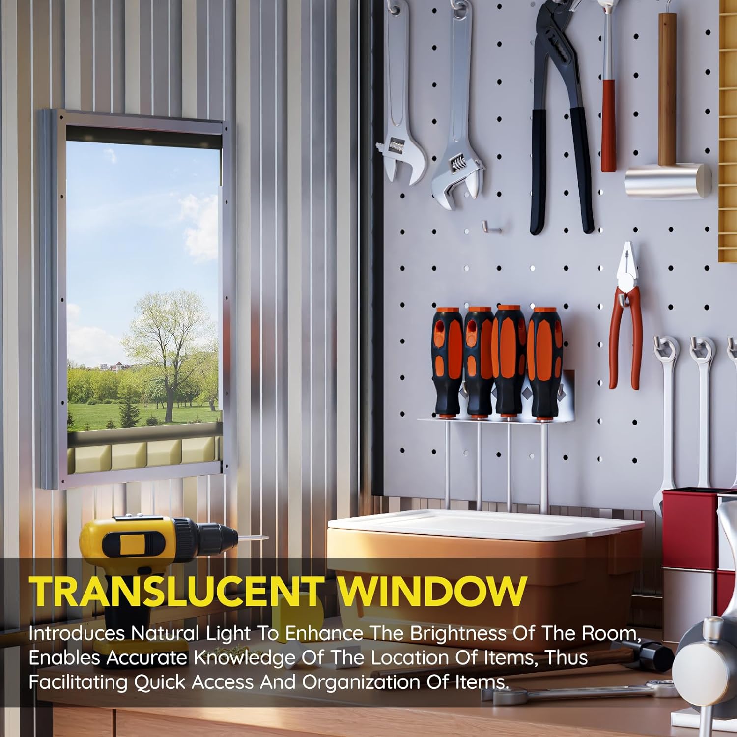 - Heavy-Duty Galvanized Steel Panels β Weather-resistant material protects against rust, corrosion, and UV damage, ensuring long-term use.