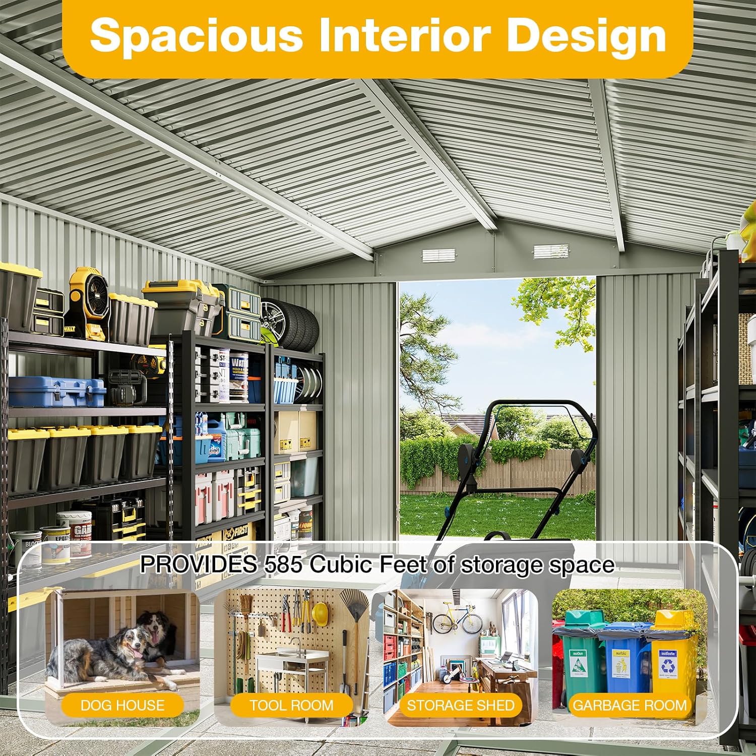 - All-Weather Versatility: Optimize backyard, patio, or driveway storage with this versatile outdoor storage shed. The design accommodates bike storage, tools, generators, and gardening equipment, with vertical space for tall items like shovels or ladders. Ideal as a patio storage solution or garden shed for diverse applications.