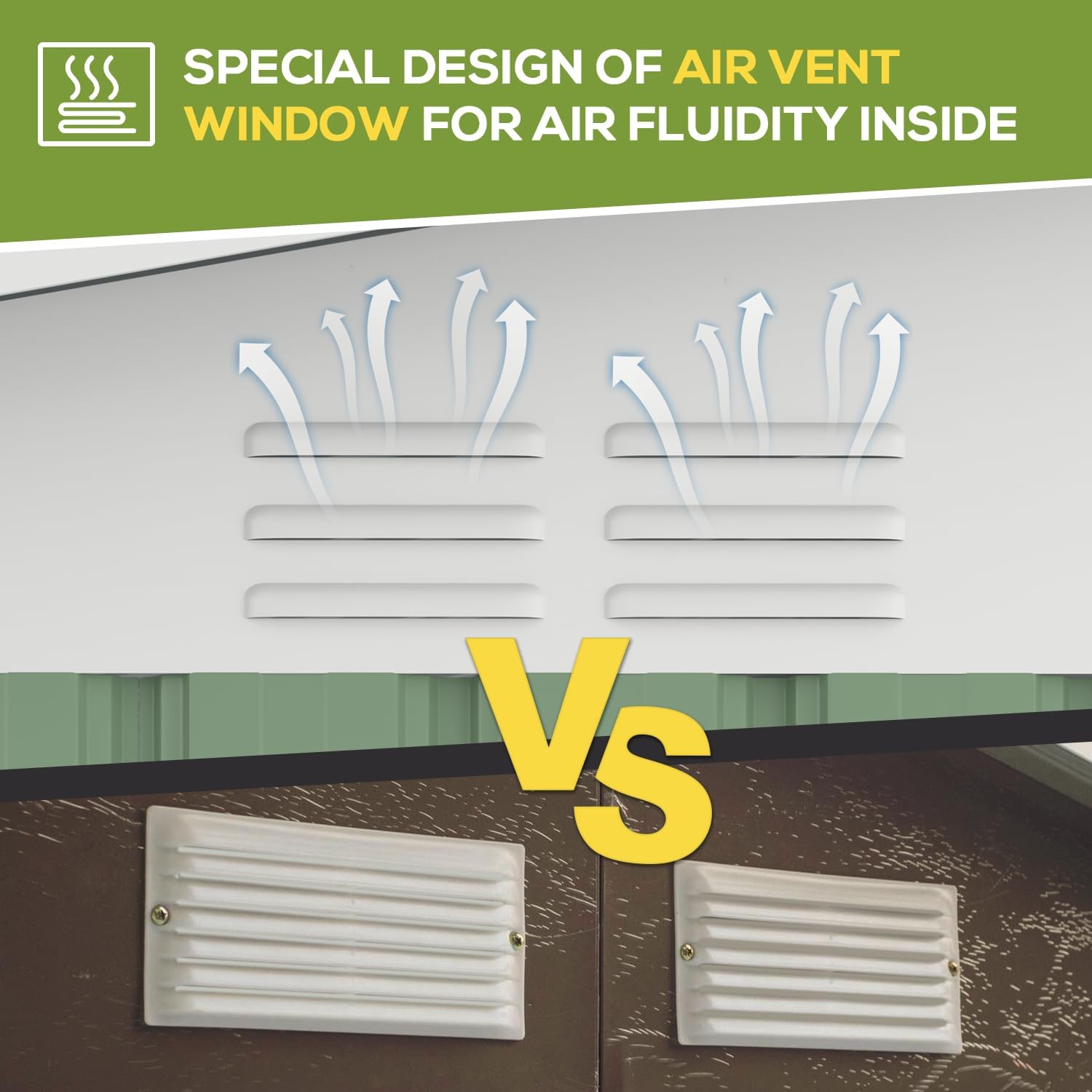 - Sturdy & Durable: Upgrades to each metal plate result in the shed weighing 73 pounds, surpassing cheaper alternatives and significantly enhancing stability. With outstanding wind resistance of approximately 54 miles per hour, it can withstand harsh weather conditions.