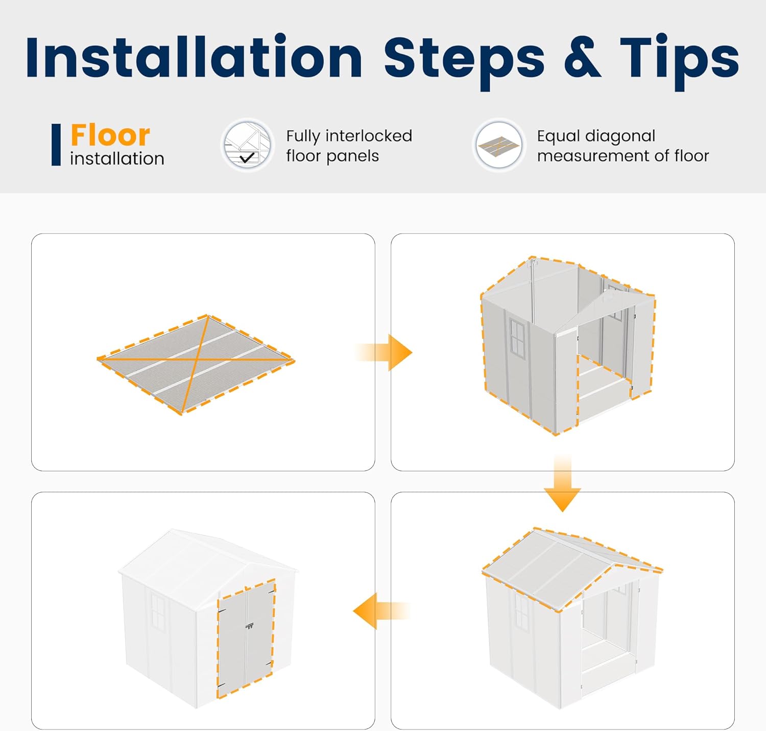 - HIGH-QUALITY MATERIAL: This outdoor storage shed is made of 12mm high-quality polypropylene resin plastic. Our resin storage shed has good characteristics such as recyclability, corrosion resistance, waterproofing, and rust prevention