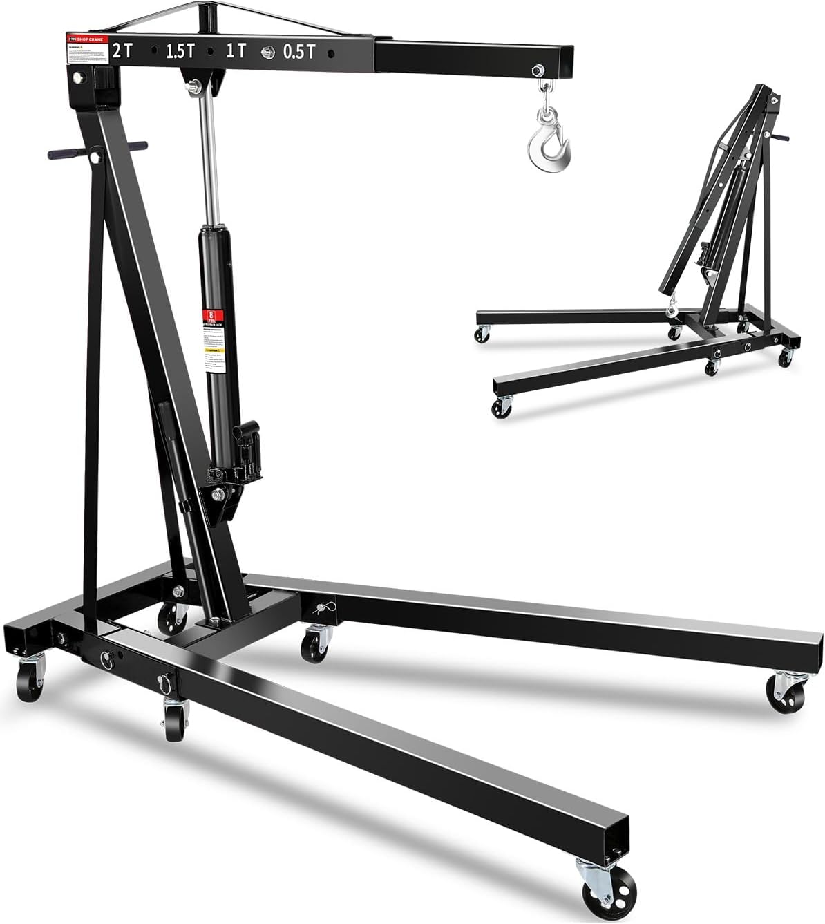 • 【High Lifting Capacity & Adjustable】 ✔ 2-Ton (4400 lbs) Heavy-Duty Lift – With 4 adjustable boom positions (0.5T/1T/1.5T/2T), this hydraulic engine hoist easily handles gas engines, small diesel engines, and heavy machinery, perfect for truck/SUV repair and workshop use.
