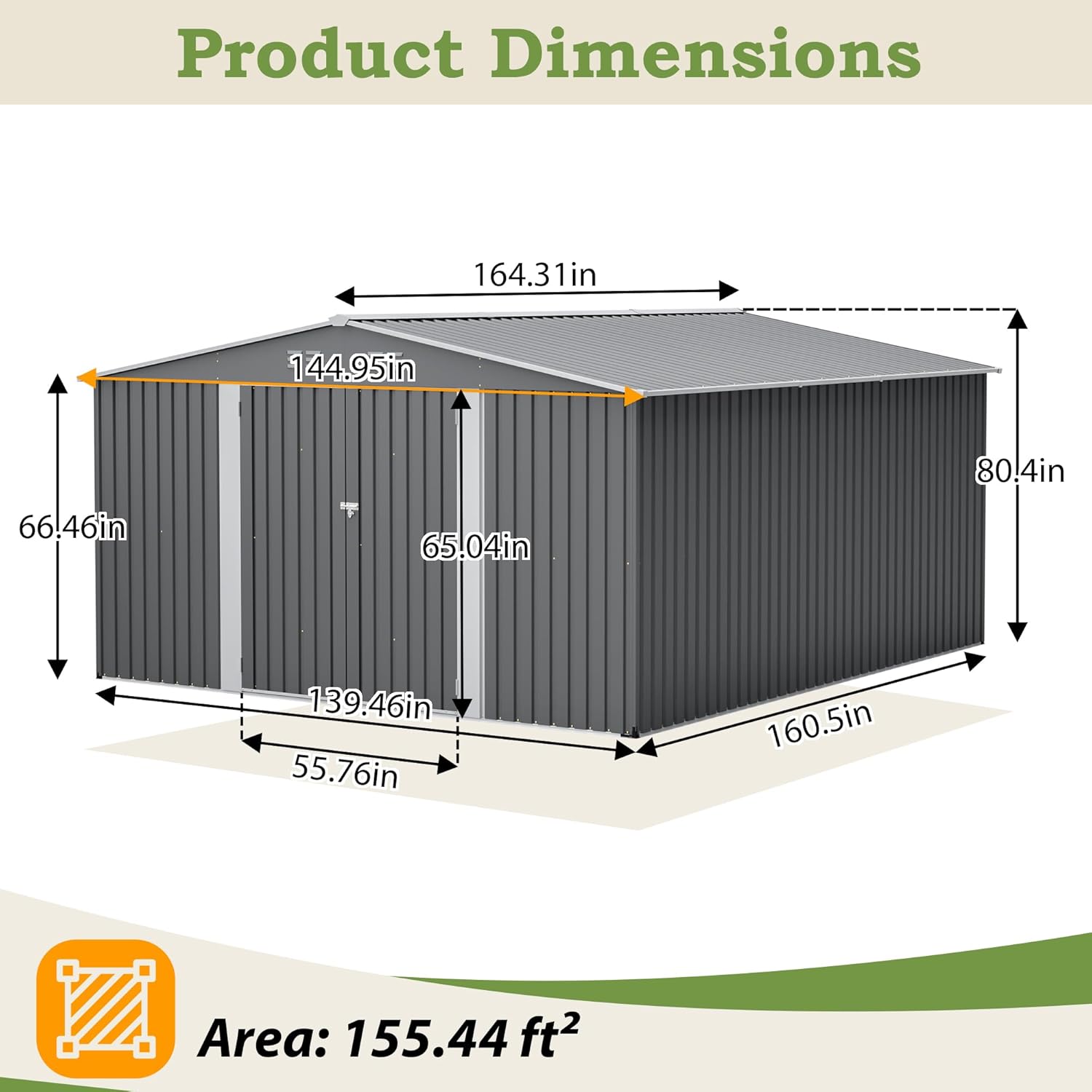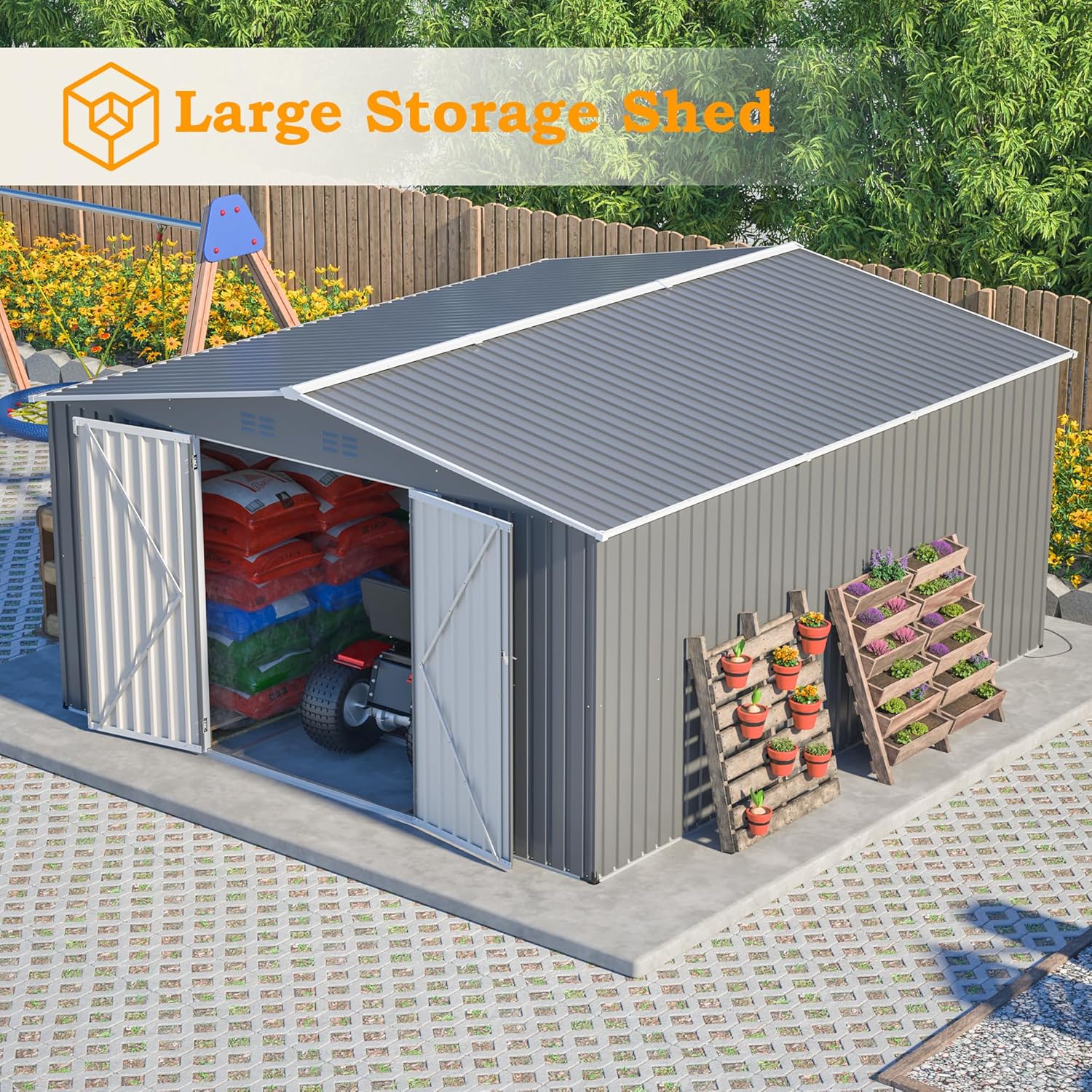 Outdoor Storage Shed, 12 X 14ft Metal Galvanized Steel Garden Shed with Floor Frame, Utility Tool Shed Storage House with Window for Backyard, Patio, Lawn